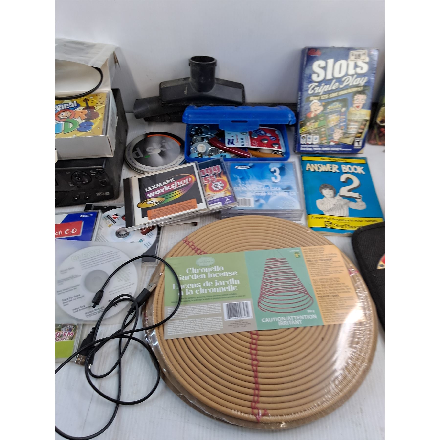 (2) Citronella Incense, Memorex VCR - Powers On, Kid's CD's, Car Audio, Books, Games, Misc.