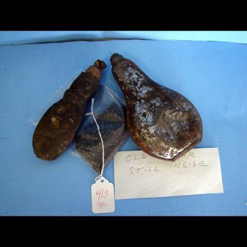 2 Civil War Era Powder Flasks One metal flask and one leather flask<Br>