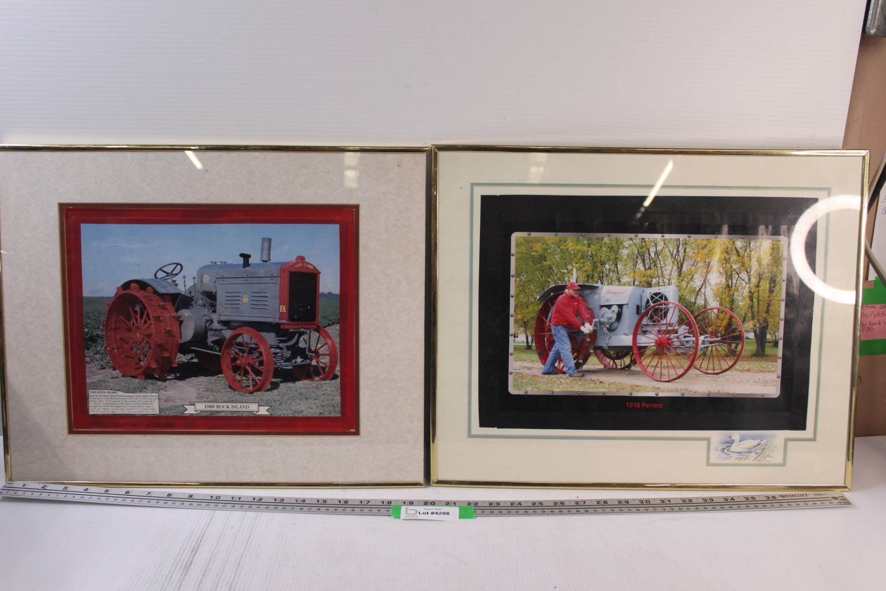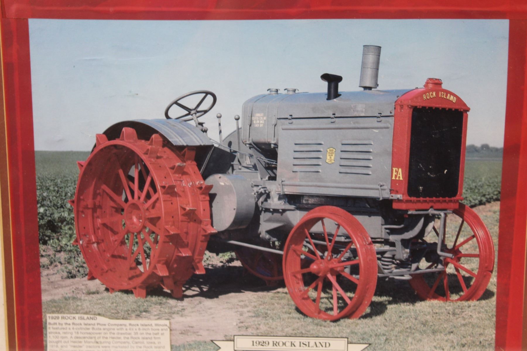 (2) Classic Tractor Picture in Frames (16" x 20"): Rock Island (Frame is Broken) & Parrett