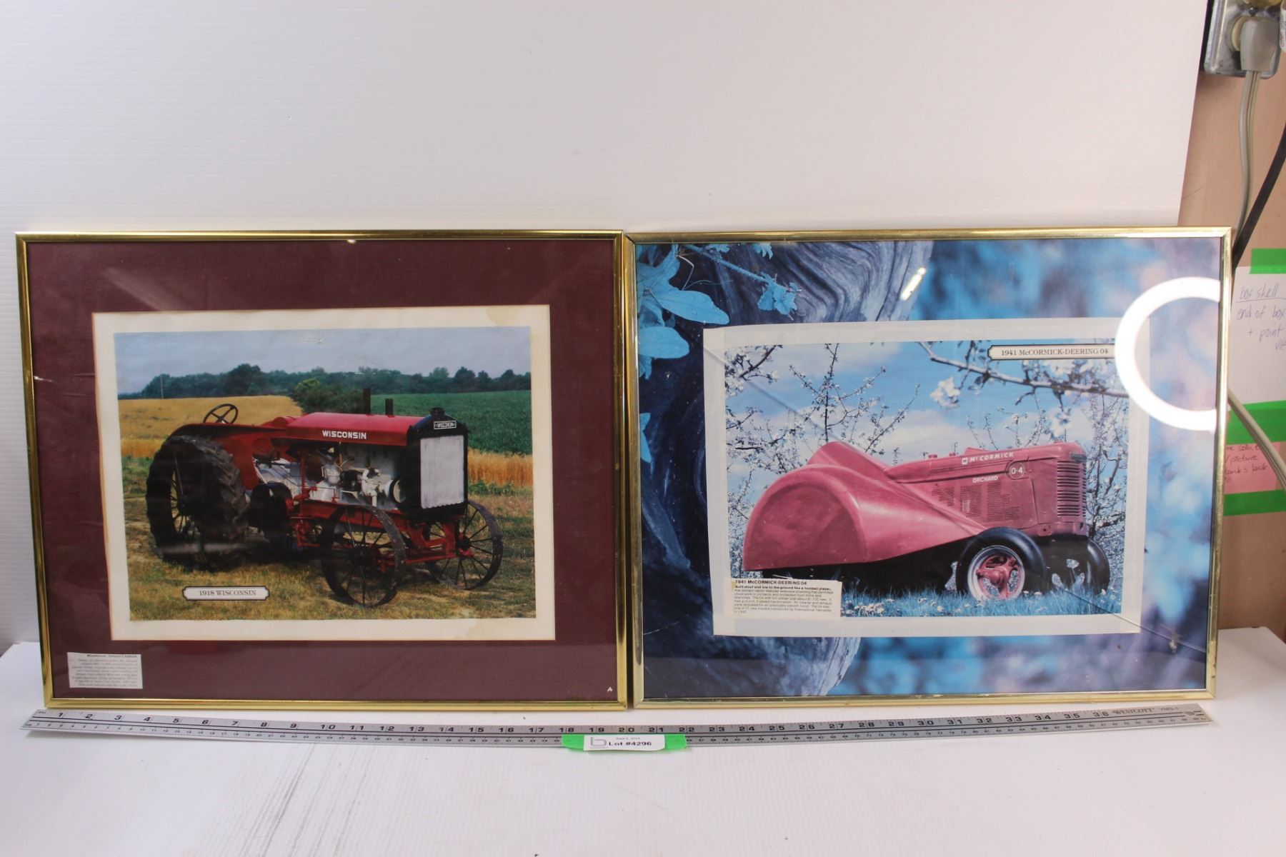 (2) Classic Tractor Picture in Frames (16" x 20"): Wisconsin & McCormick - Deering (Has Crack)