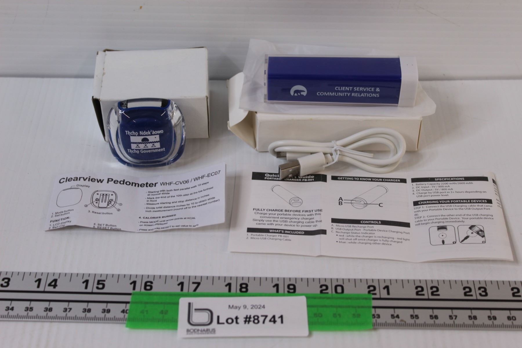 (2) Clearview Pedometer in Box & Portable Charger PB-001 in Box