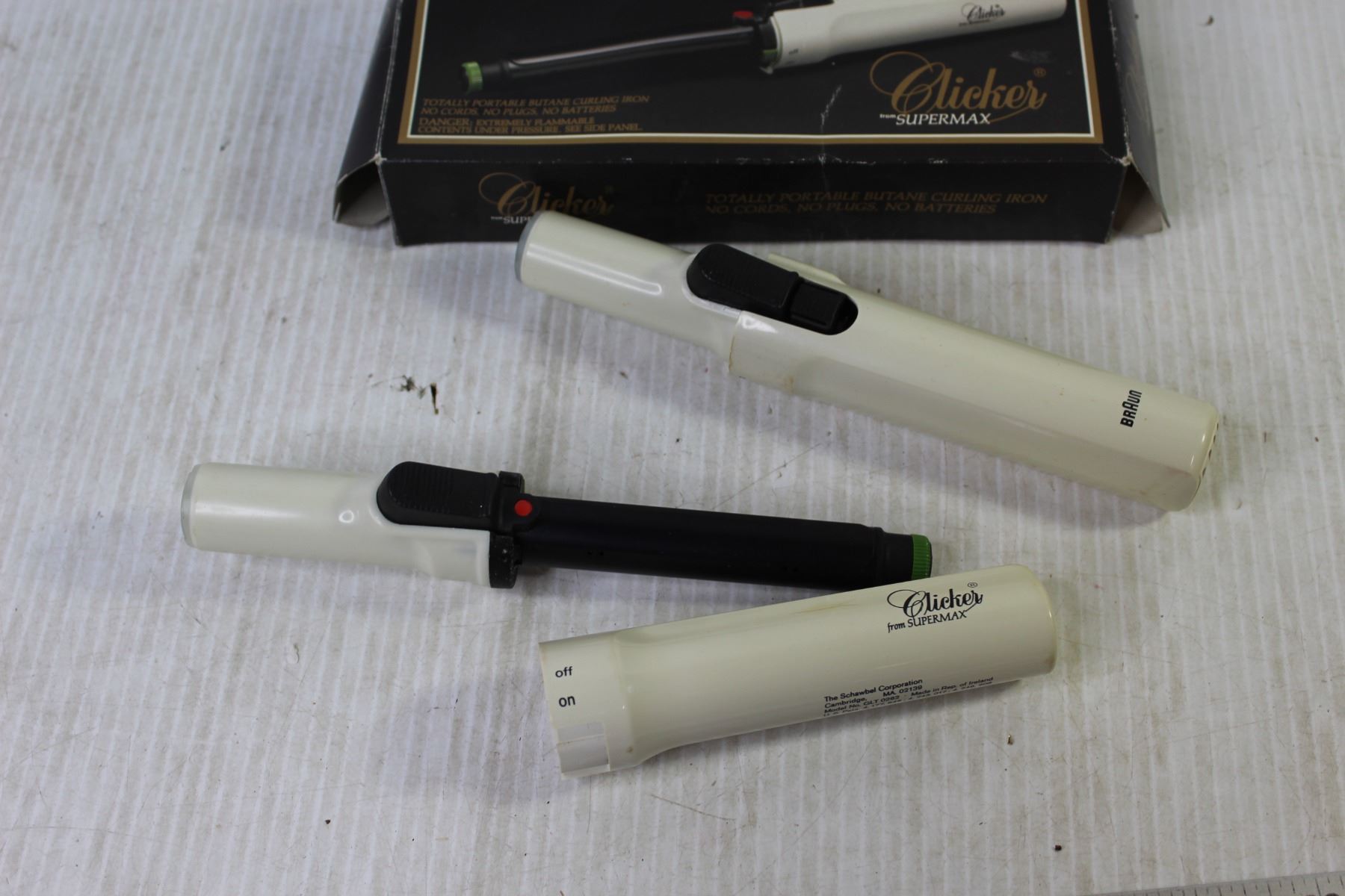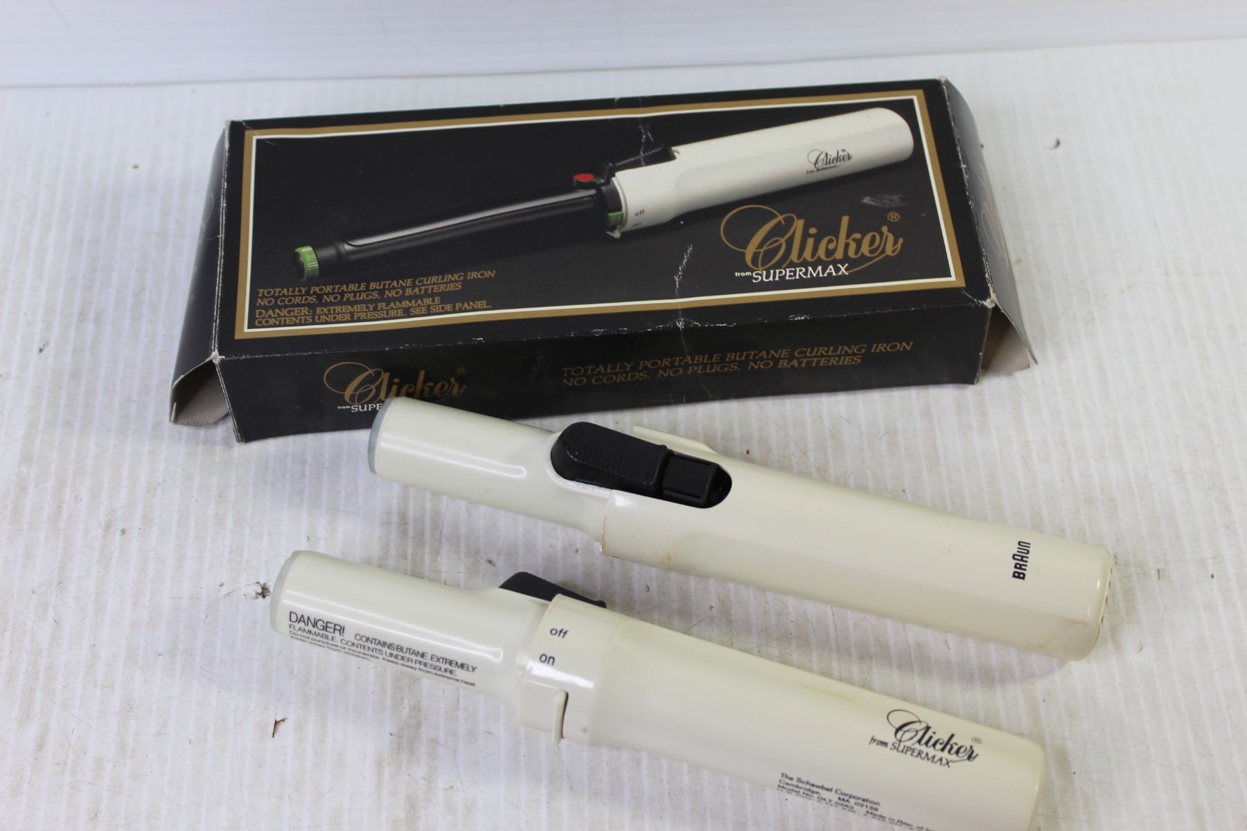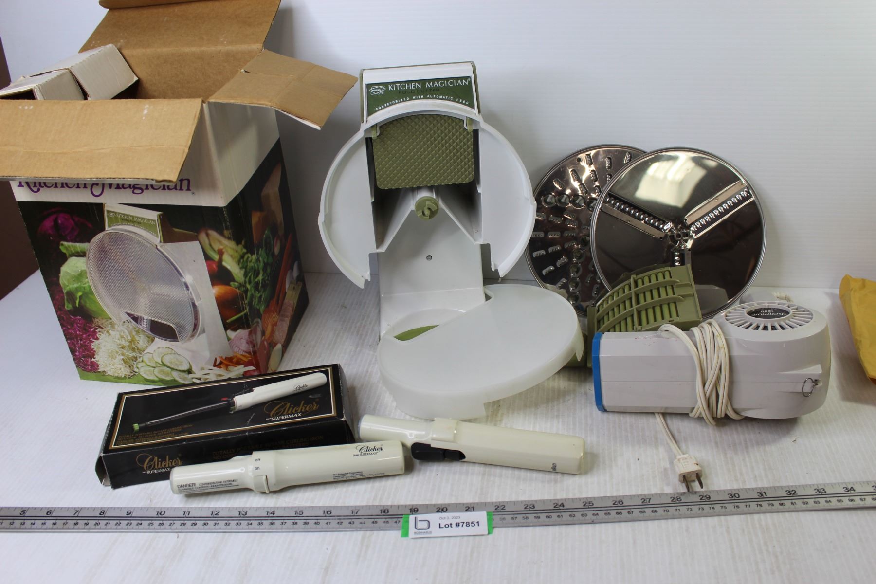 (2) Clicker Max Curling Irons (untested) - Kenmore 1000 Hair Dryer (working) - Kitchen Magician