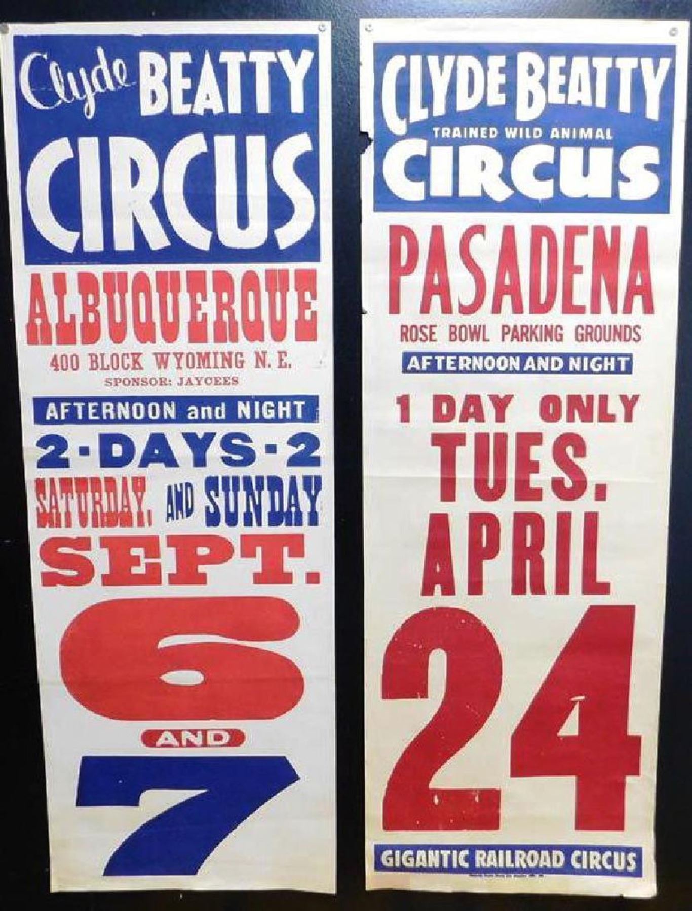 2 Clyde Beaty Circus Posters. Albuquerque and Pasadena.