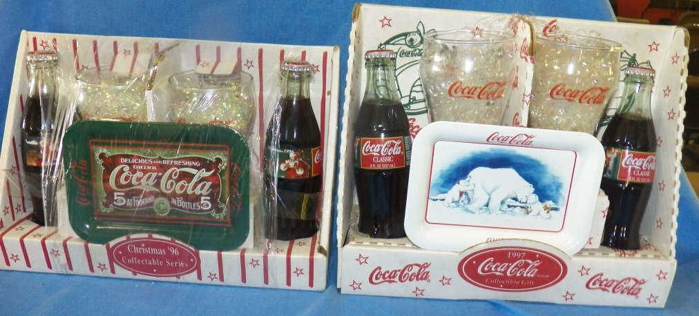 1996 & 1997 Coca-Cola Collector Series Coke Trays & Bottles & Glasses
