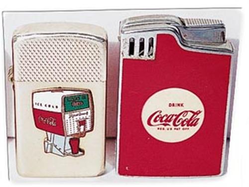 The musical lighter cond. 8.5. and the aluminum lighter with an attached enameled 1950's-60's dispenser, cond. 8.0.