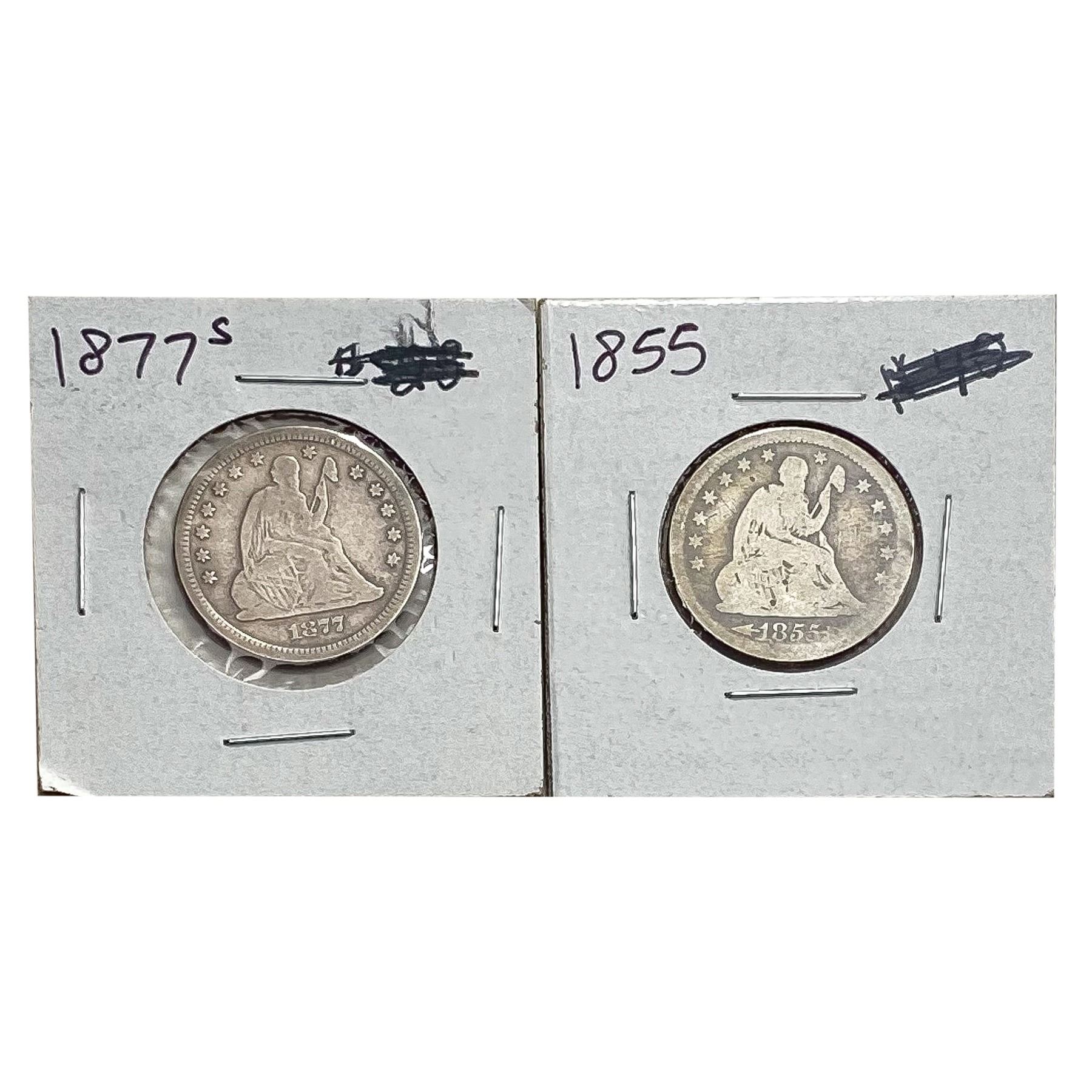 [2 Coins] 1855-1877 Seated Liberty Quarter