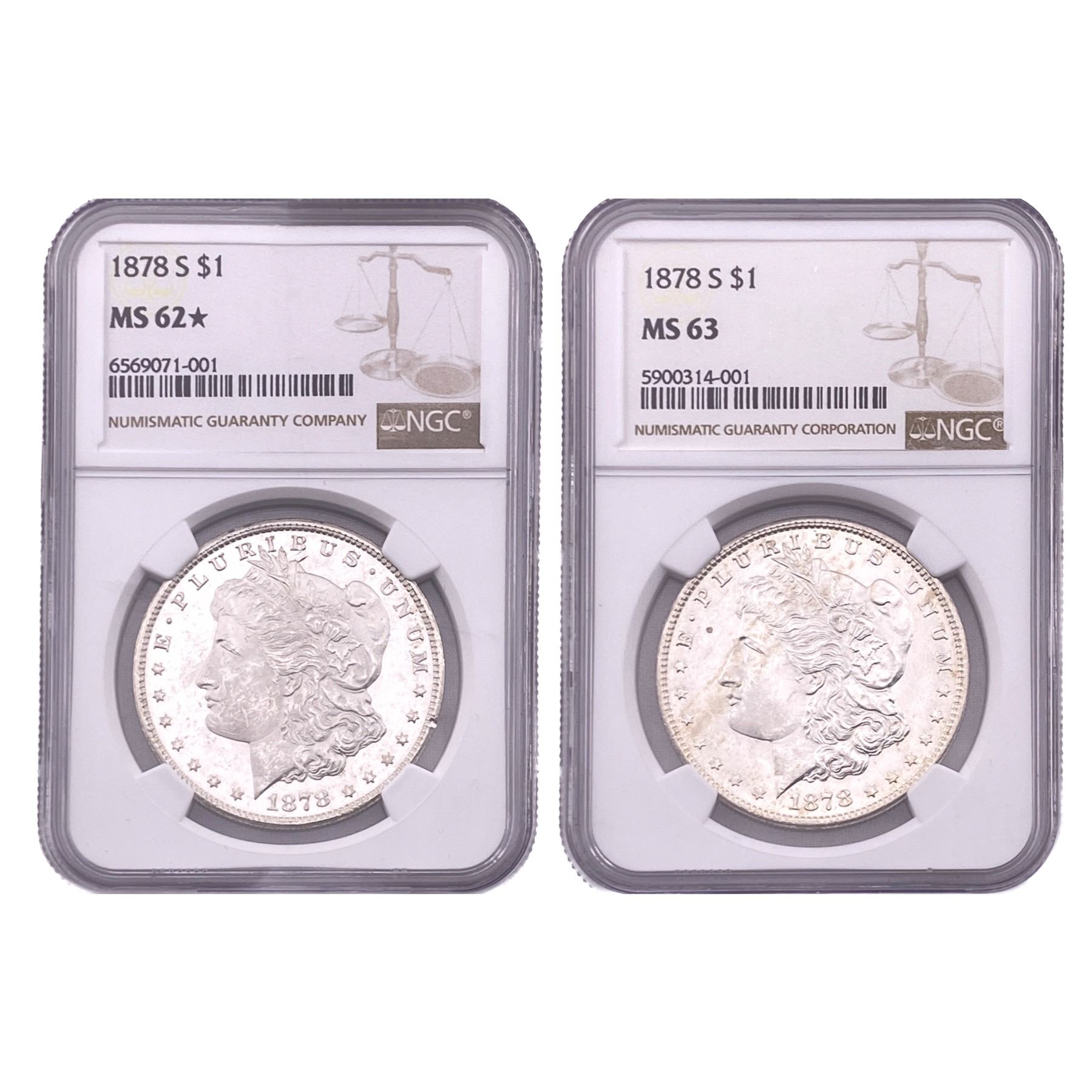 [2 Coins] 1878-S Morgan Silver Dollar NGC MS62-63