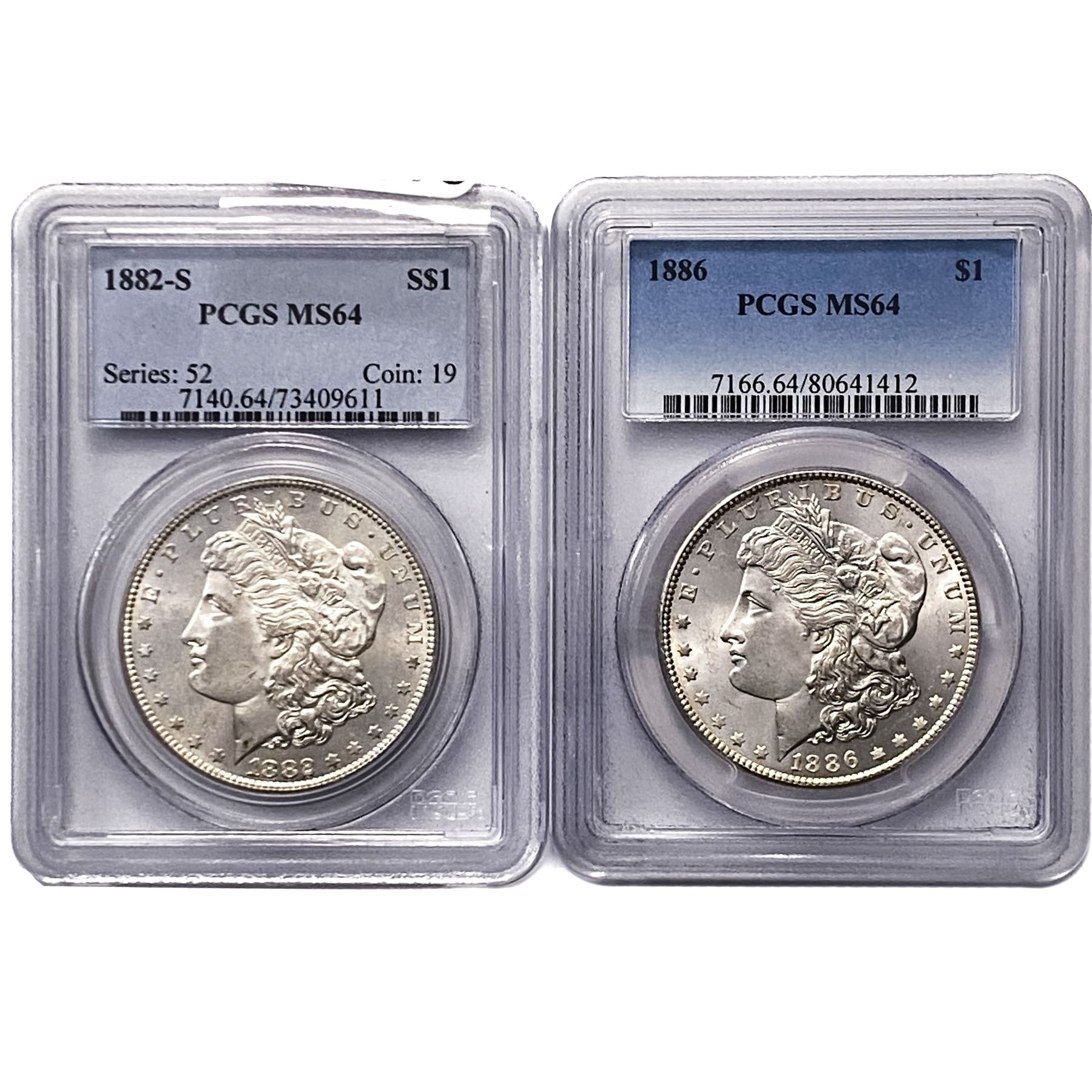 [2 Coins] 1882-1886 Morgan Silver Dollar PCGS MS64