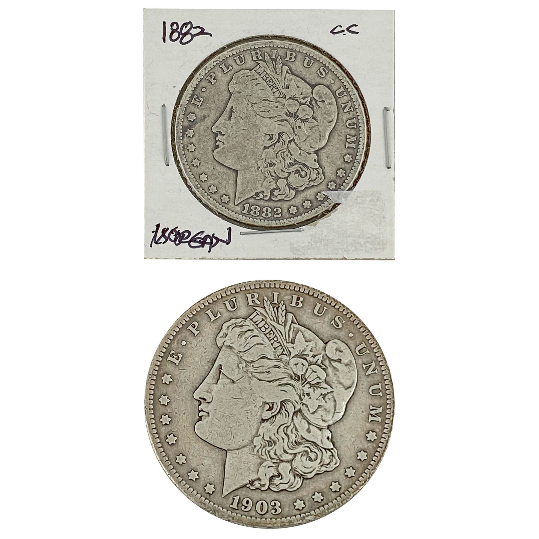[2 Coins] 1882-CC, 1903-S Morgan Silver Dollar Lot LIGHTLY CIRCULATED