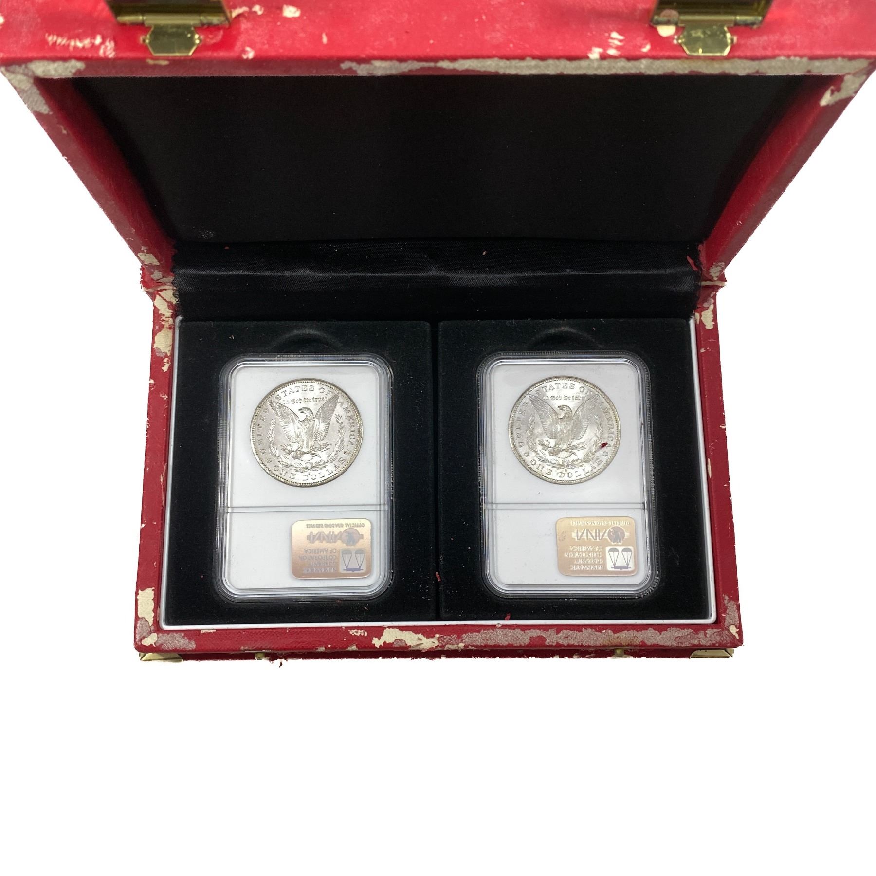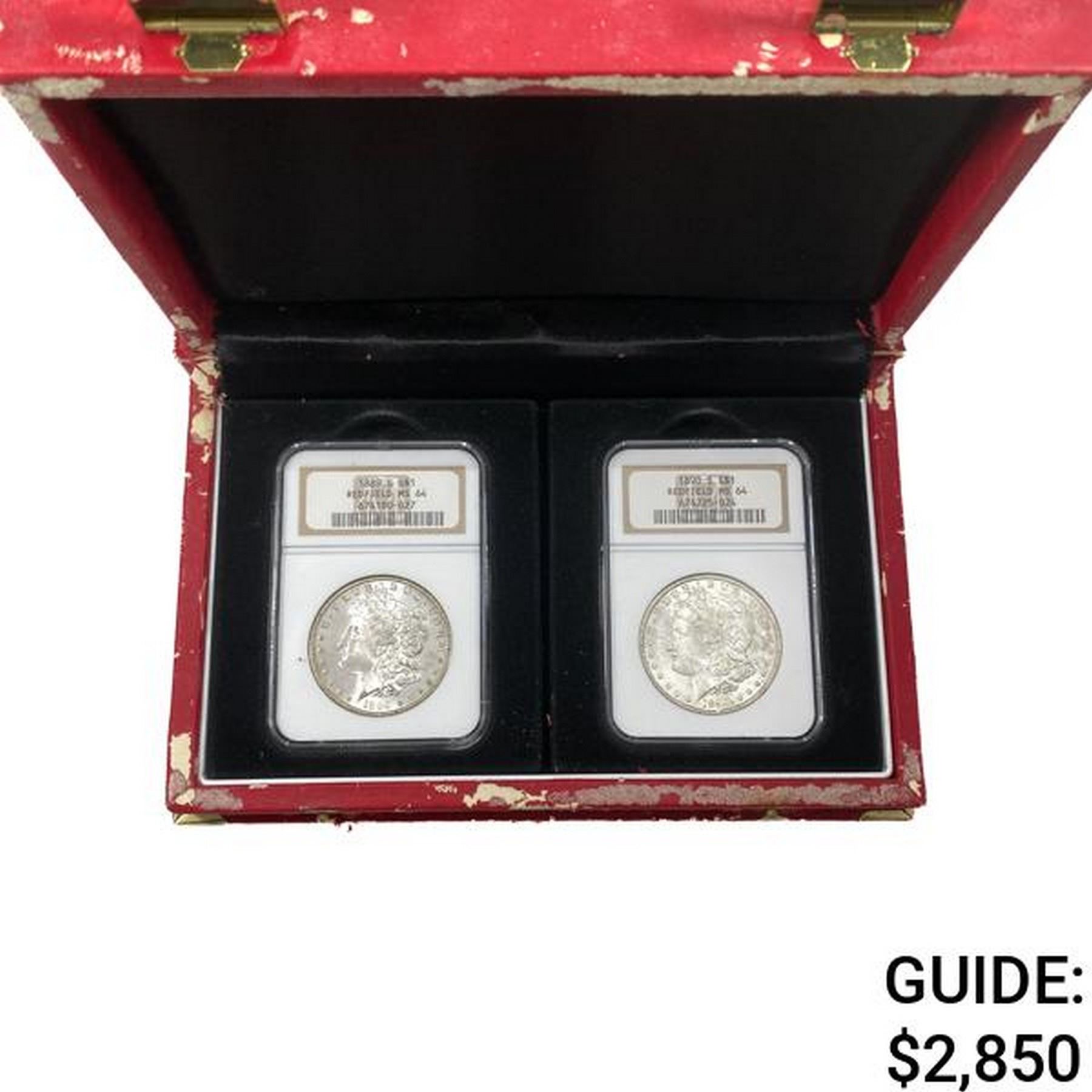 [2 Coins]1890-1889 Morgan Silver Dollar REDFIELD MS64 With Box