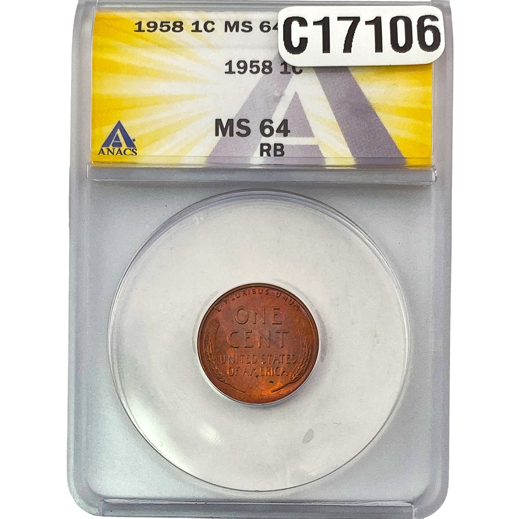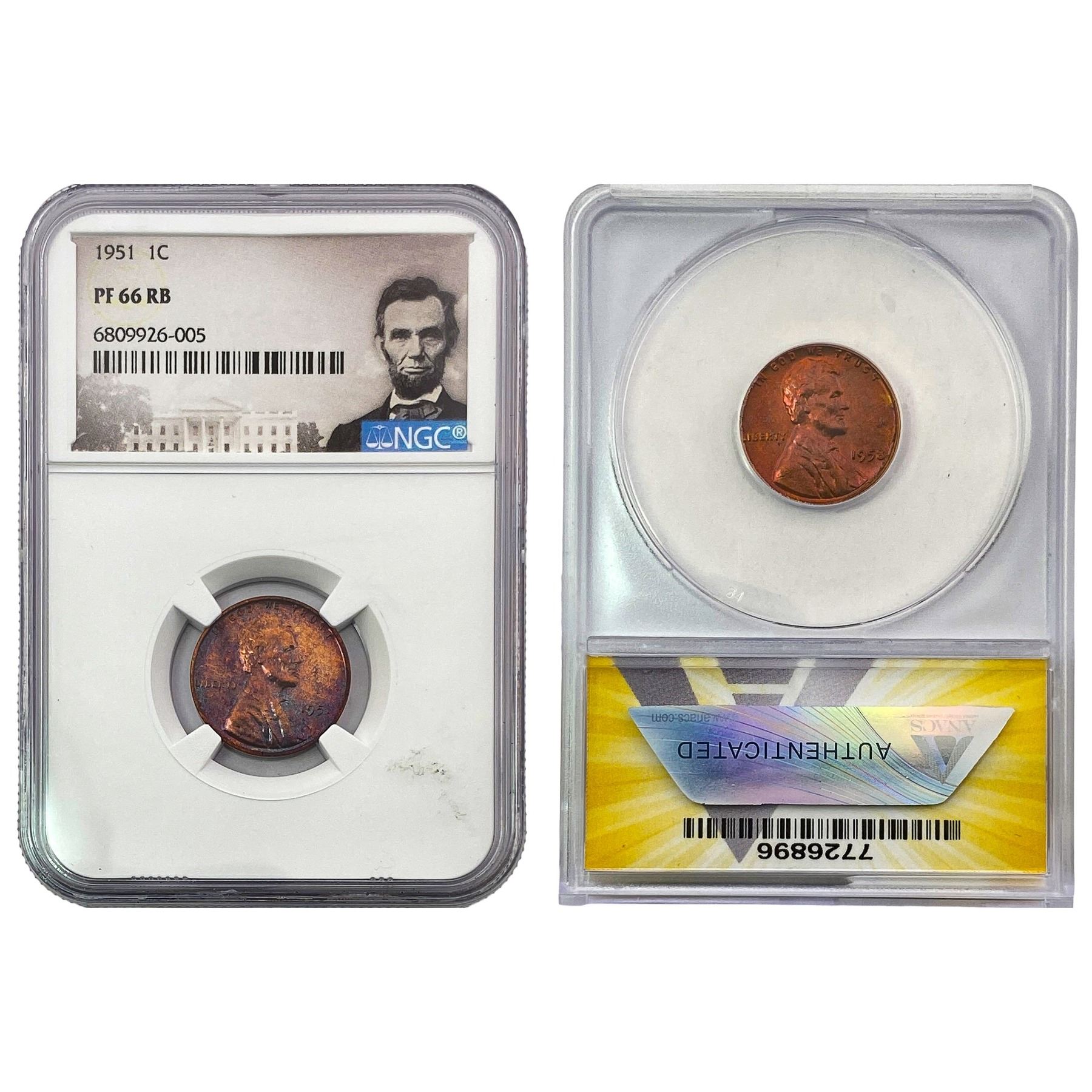 [2 Coins] 1951-1958 Wheat Cent ANACS/NGC PF/MS64-66 RB