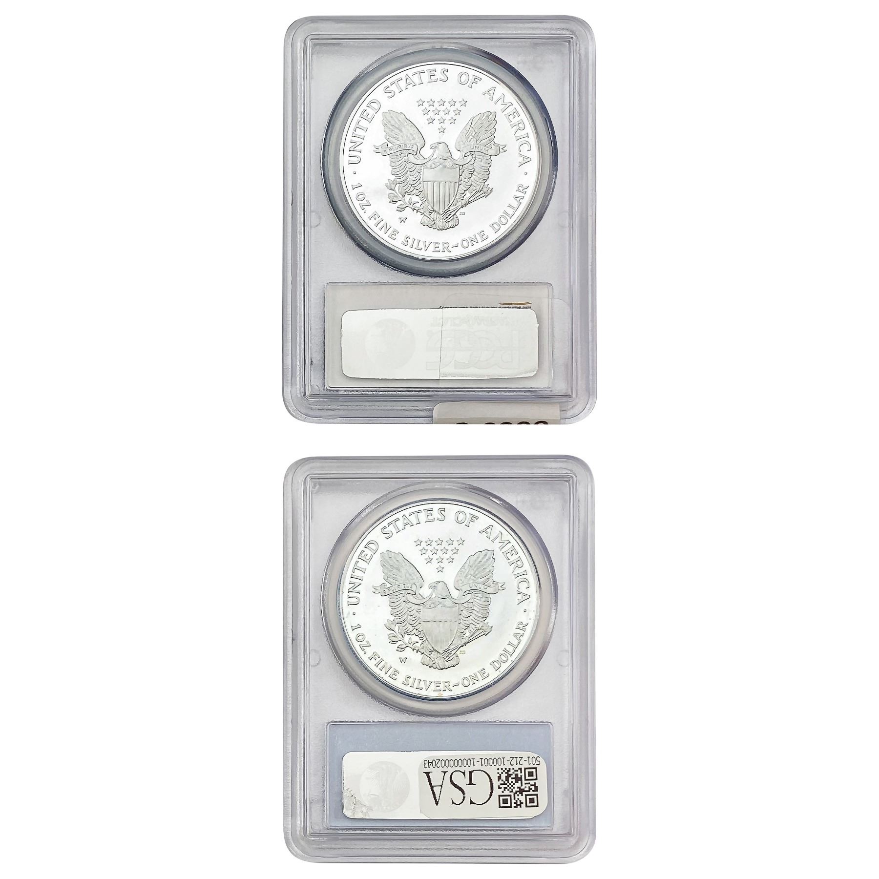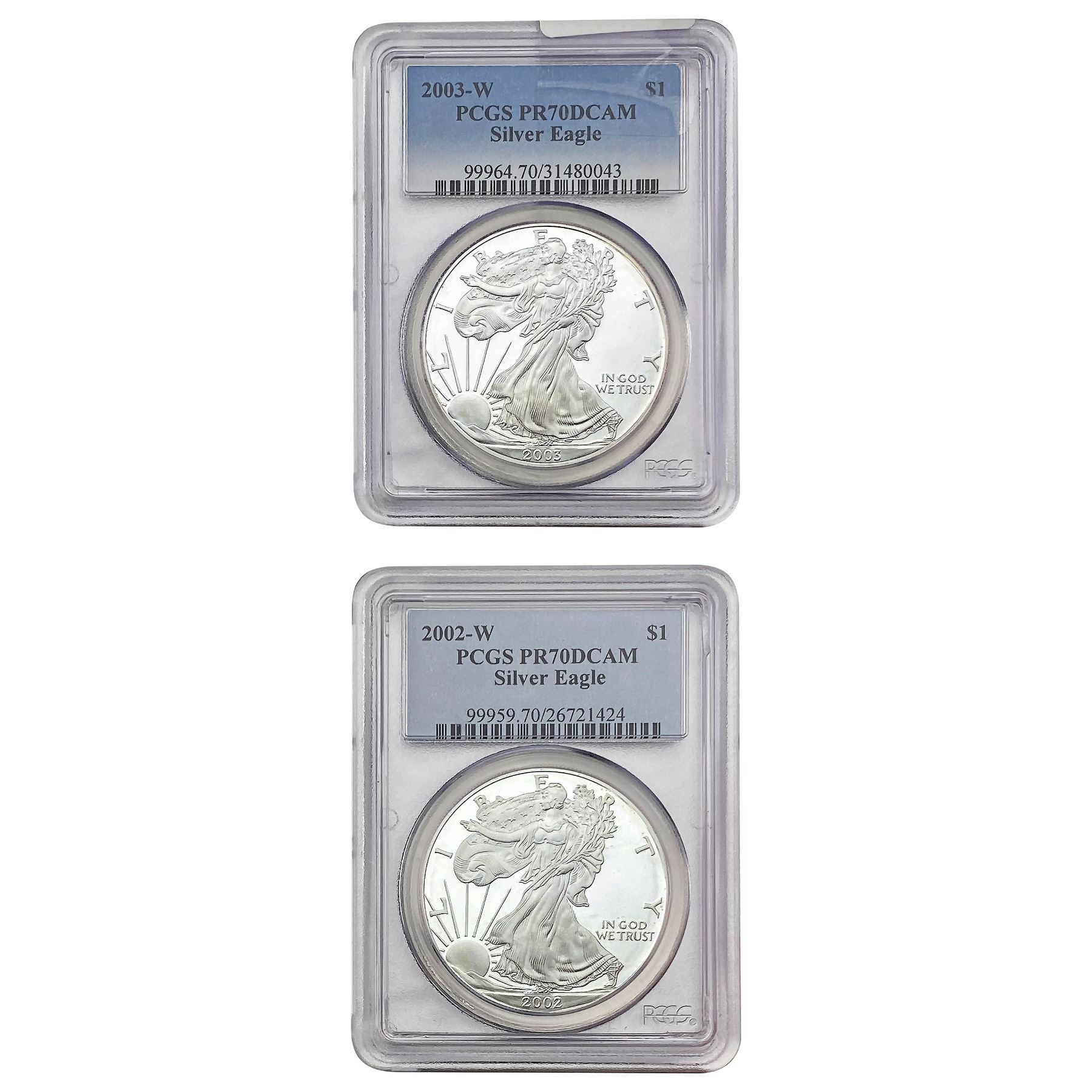 [2 Coins] 2002-2003-W US Silver Eagle Lot PCGS PR70 DCAM