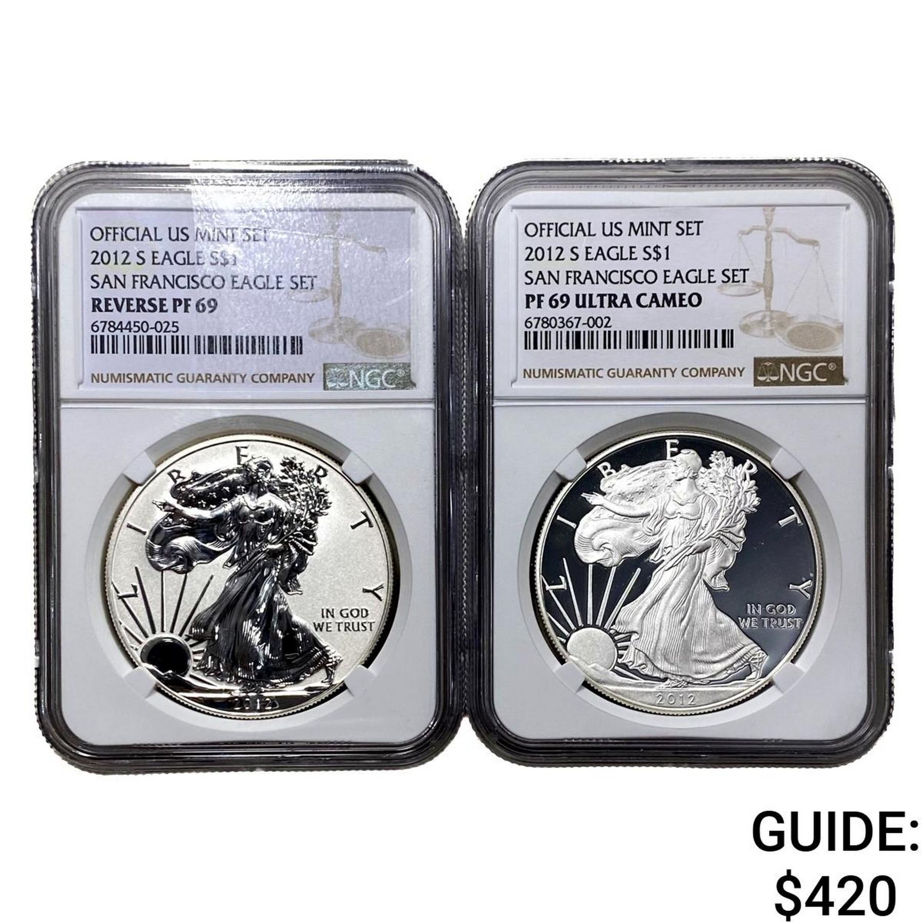 [2 Coins]2012 Silver Eagle NGC PF69