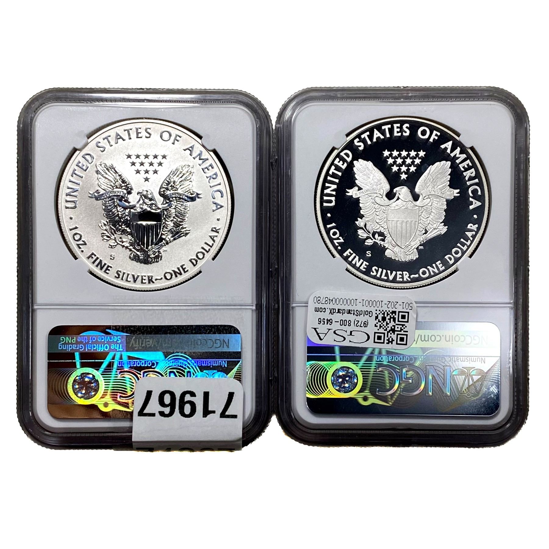 e. Coins sold referencing a third-party grading service are sold “AS IS” without any express or implied warranty, except for a guarantee by GSA that they are genuine. Removal or alteration of the holder, voids all of Bidder’s claims concerning that Product. Certain warranties may be available from the grading services and Bidders are referred to them for further details: Numismatic Guaranty Corporation (NGC), PO Box 4776, Sarasota, FL 34230, www.ngccoin.com/services/writtenguarantee.asp; Professional Coin Grading Services (PCGS), PO Box 9458, Newport Beach, CA 92658, www.pcgs.com/guarantee.html; ANACS, 6555 S. Kenton St., Ste. 303, Englewood, CO 80111; and Independent Coin Grading Co. (ICG), 7901 East Bellview, Ave., Suite 50, Englewood, CO 80111.