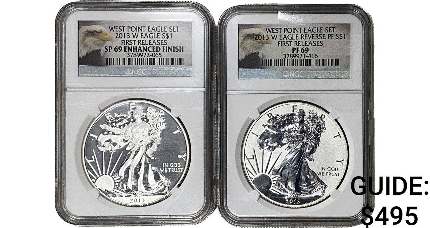 [2 Coins] 2013-W Silver Eagle NGC SP 69/PF69