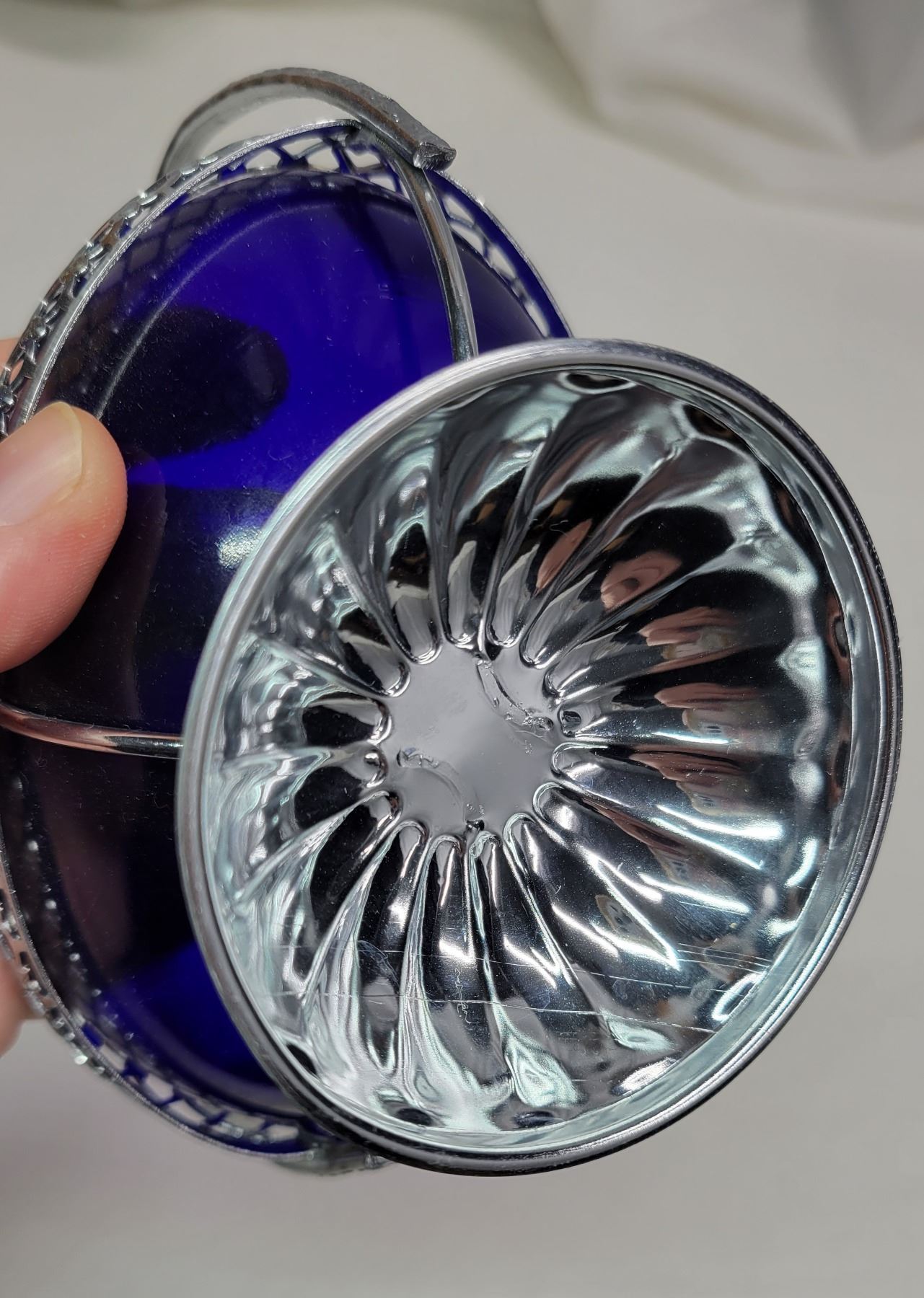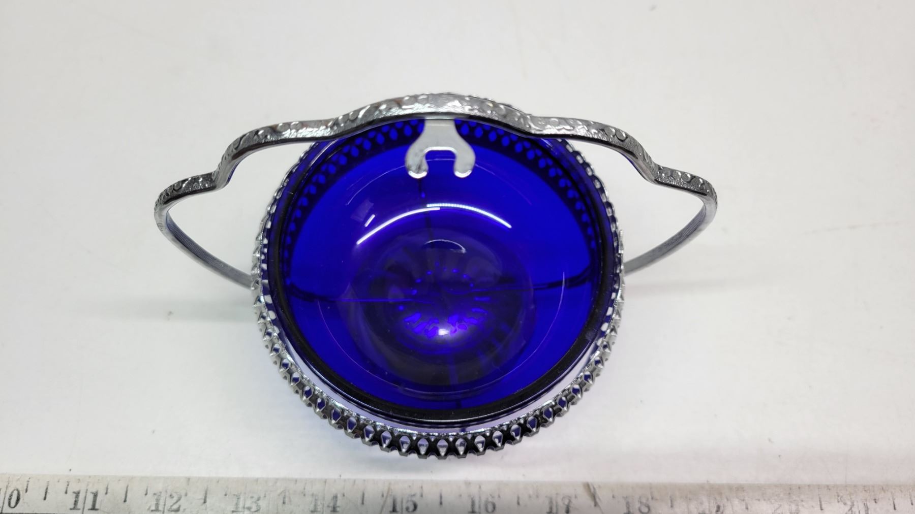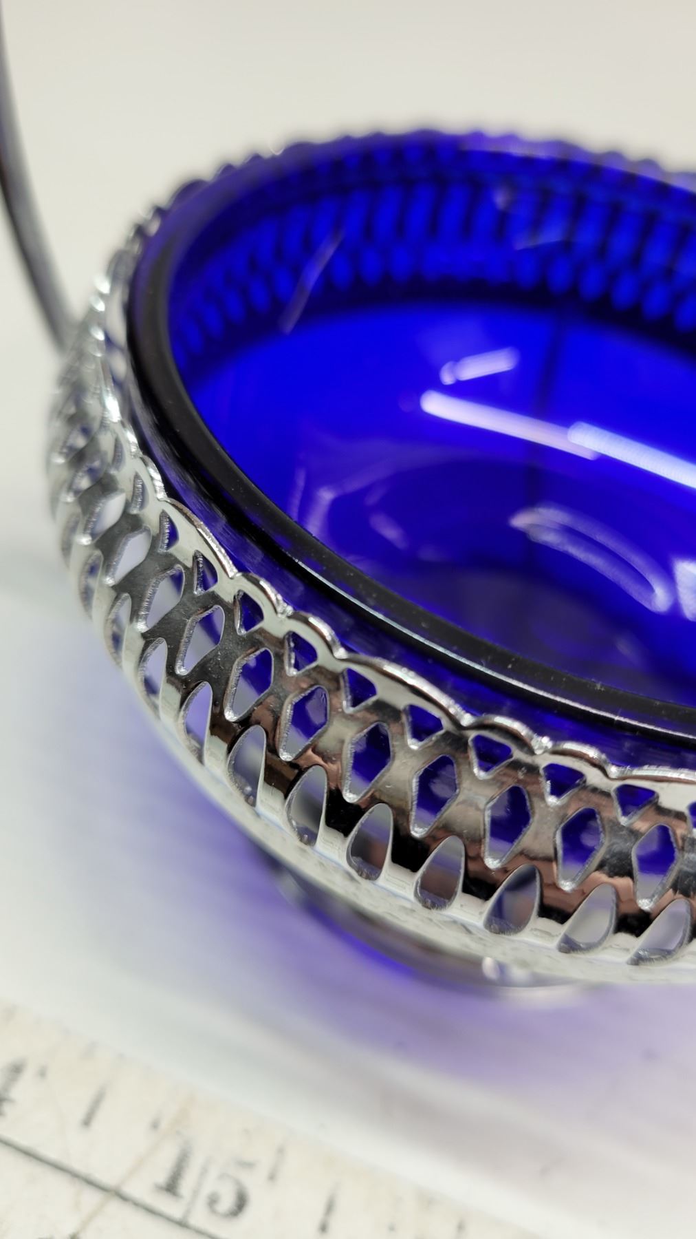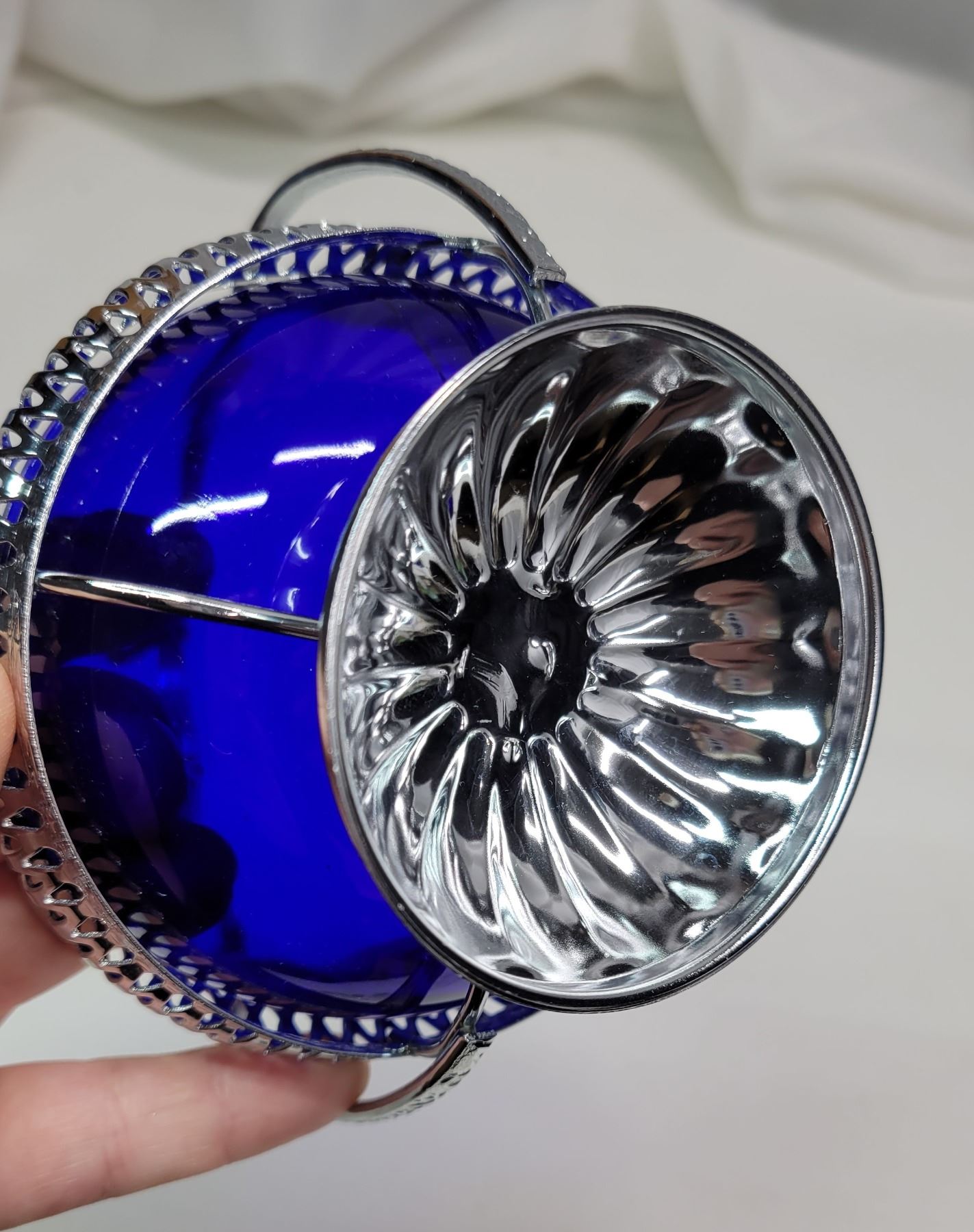2 Colbat Blue Glass Sugar Dishes with Spoon Rest