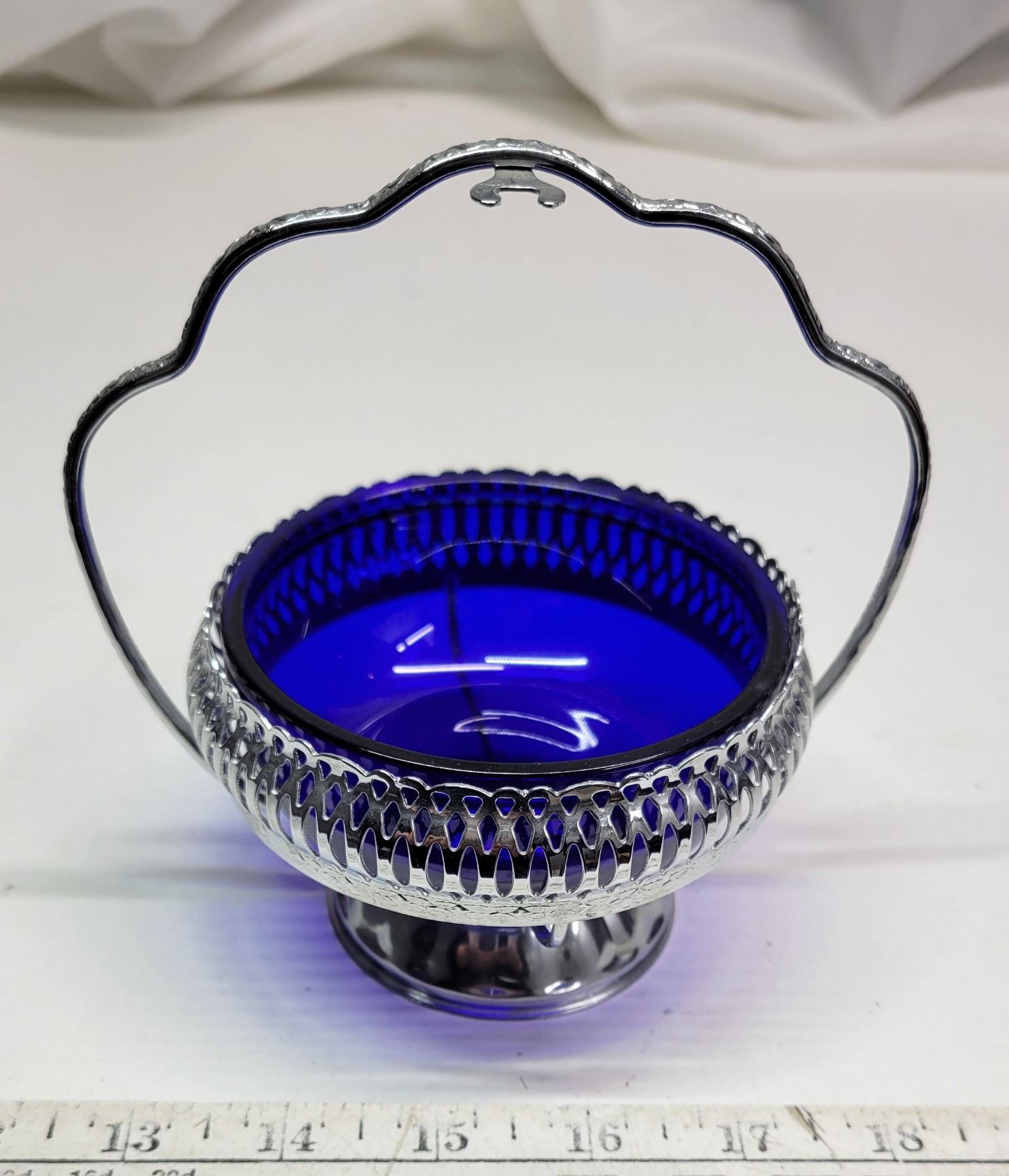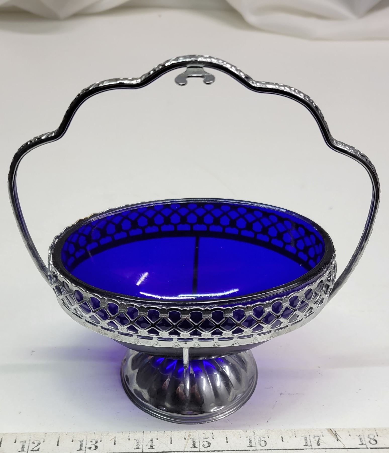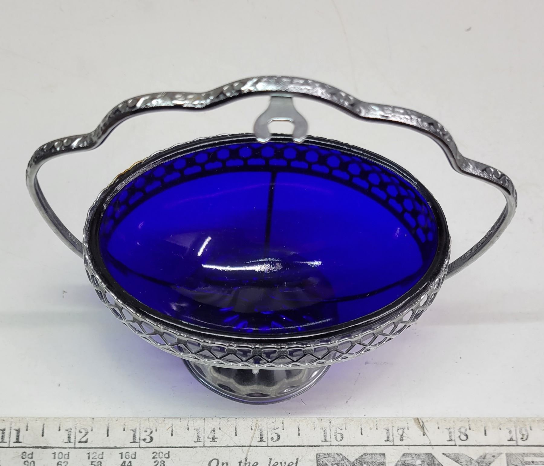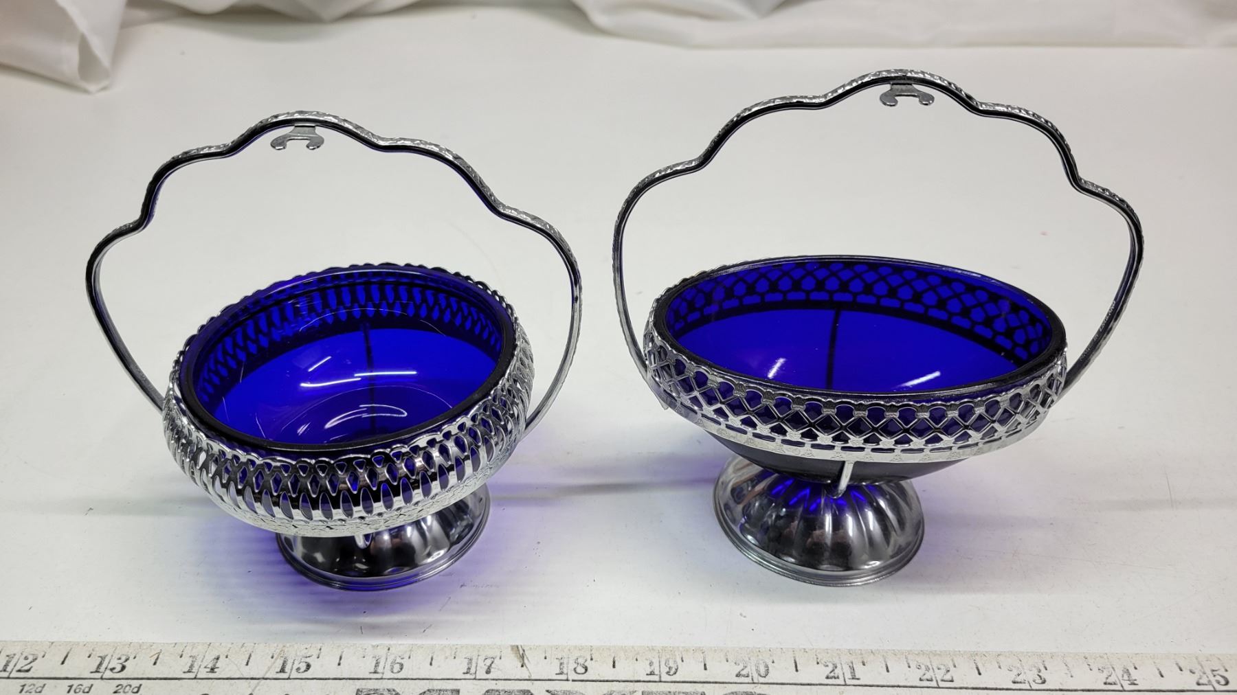 2 Colbat Blue Glass Sugar Dishes with Spoon Rest
