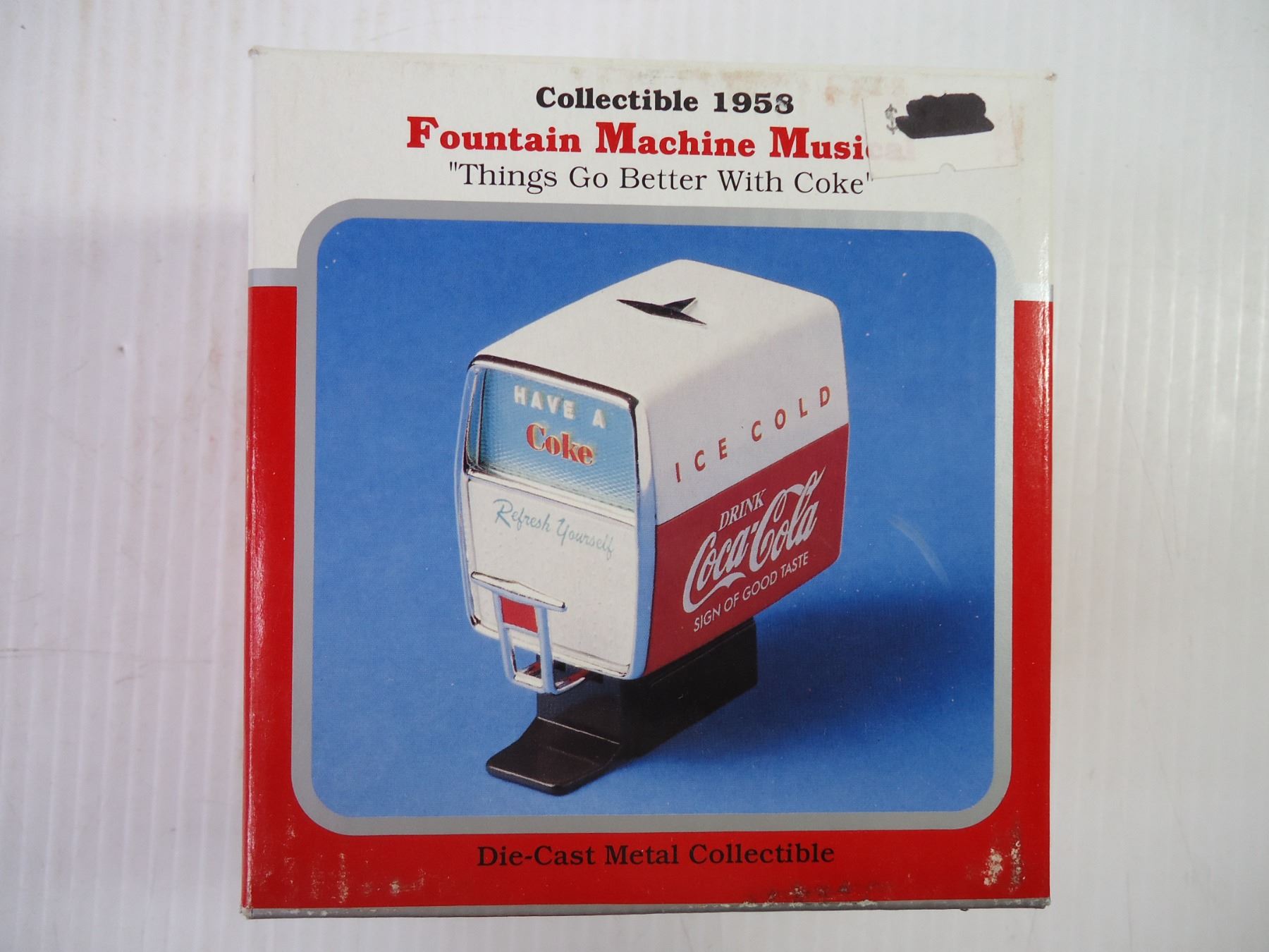 (2) Collectible Coca Cola-1958 Fountain Machine Musical and The Evolution of the Coca Cola Bottle