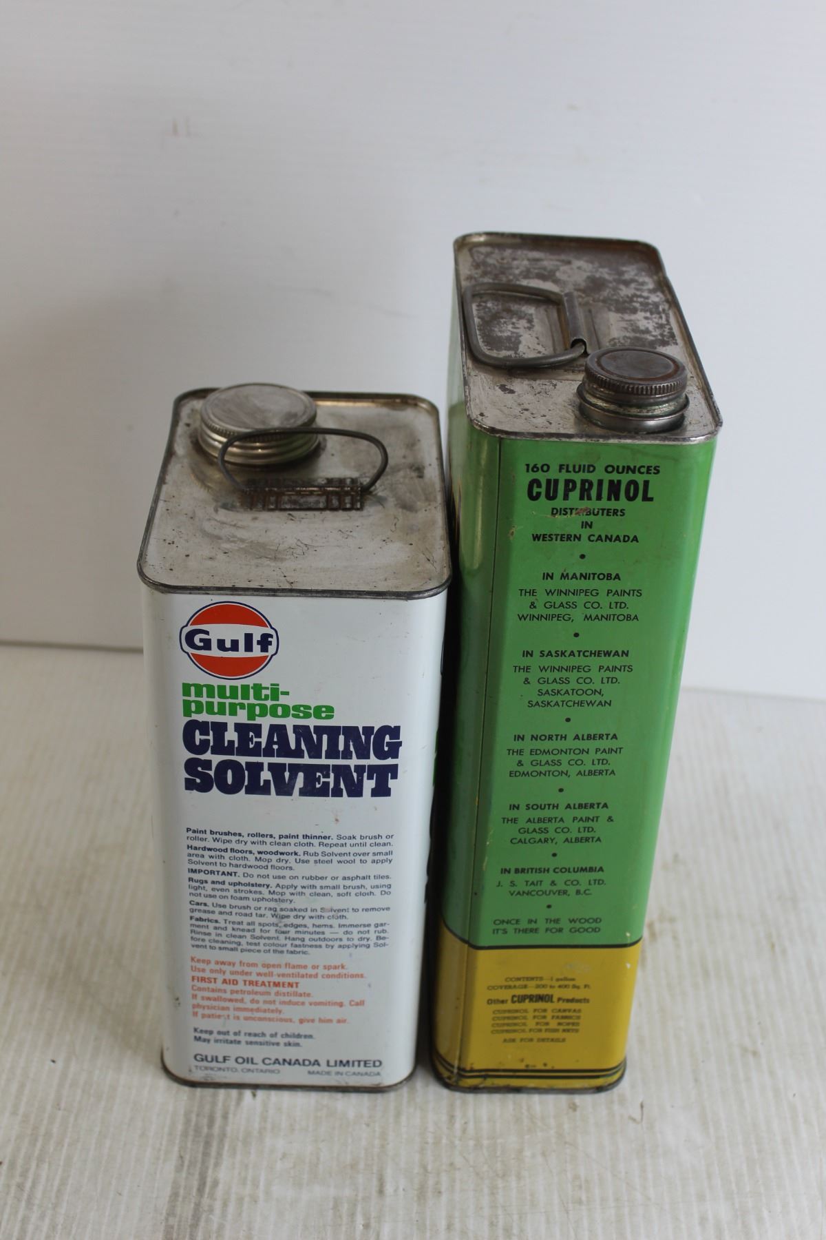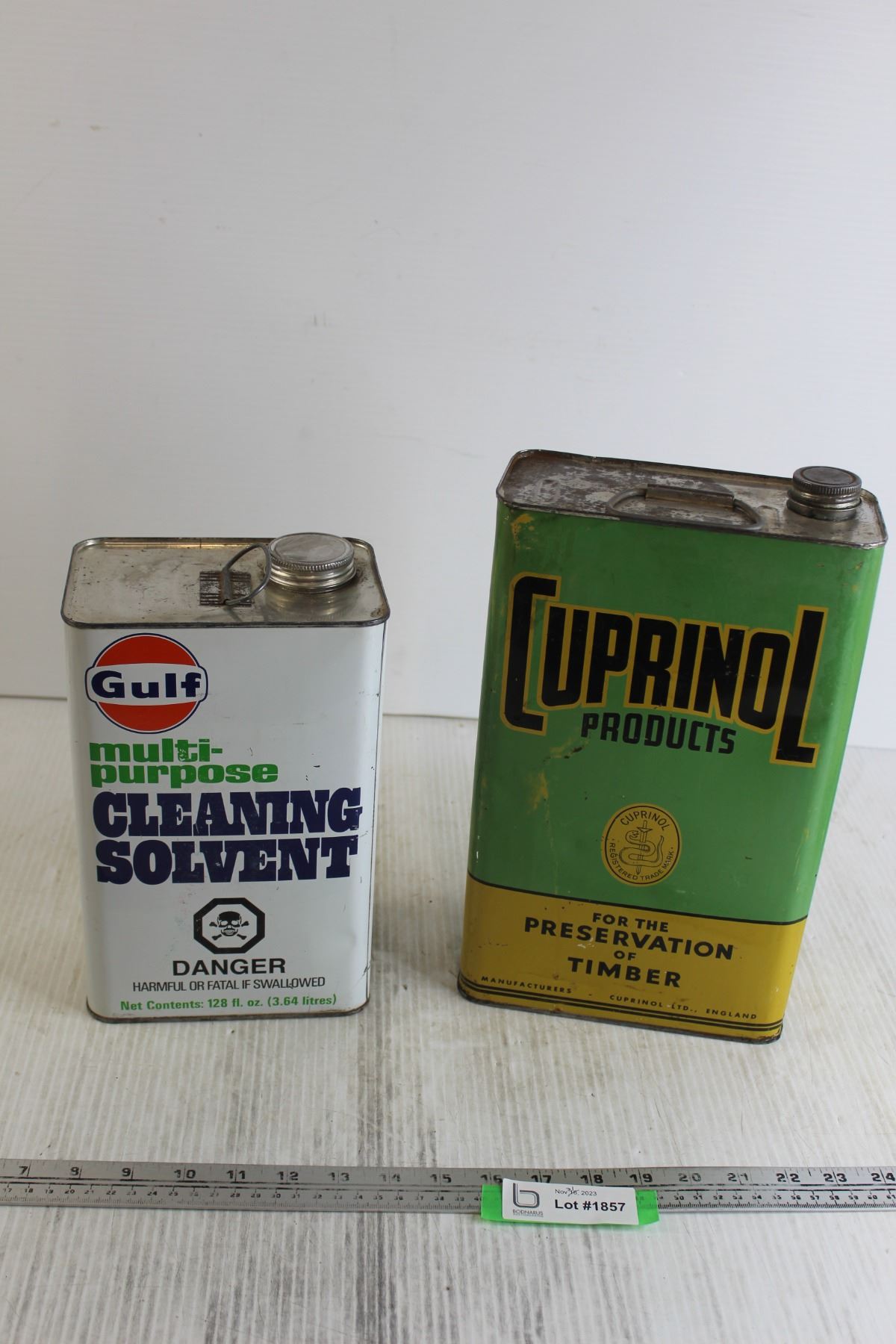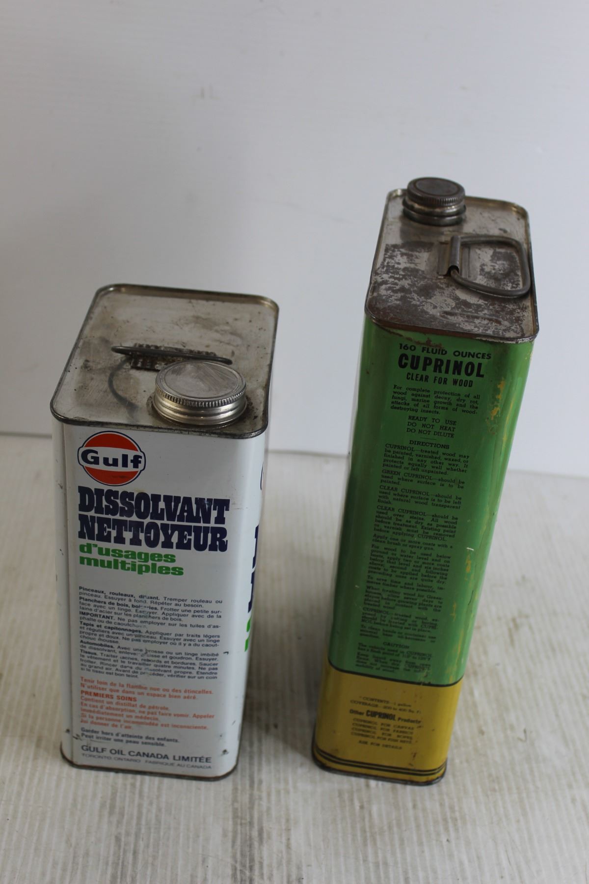 (2) Collector Tins - Gulf Multi-Purpose Cleaning Solvent, Cuprinol Products