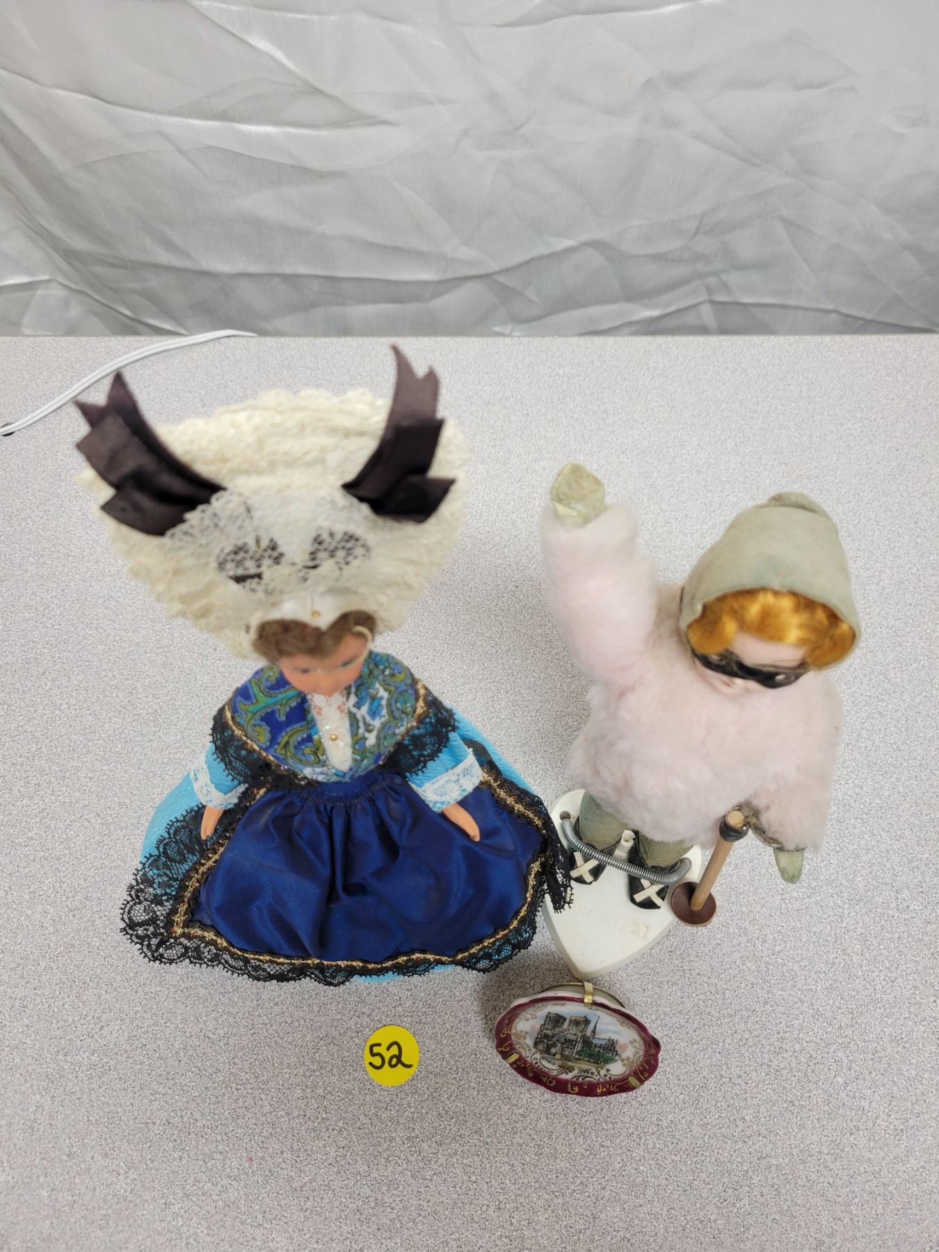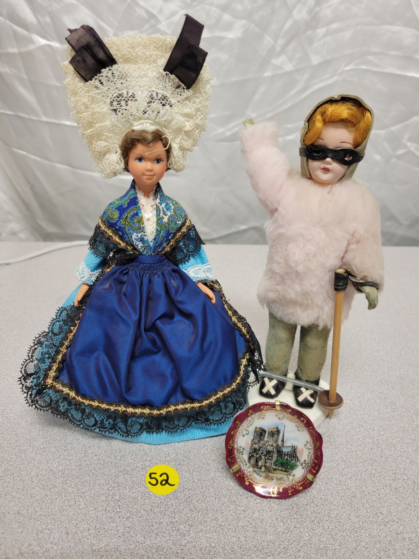 2 Collector dolls, 1960's right from France. Mini plate - Paris Notre Dame France