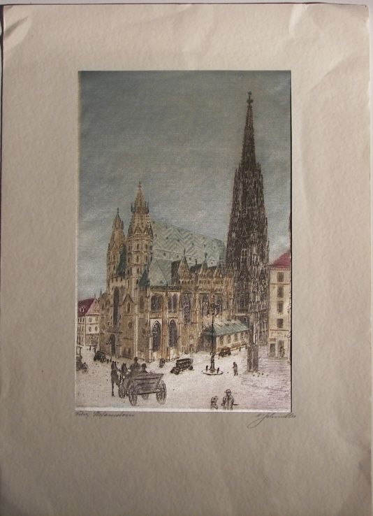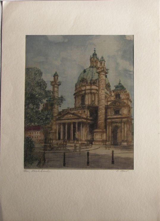 (7802) 2 Colored Etchings Printed On Silk, Of European Cathedrals, Pencil Signed On Matting, Signature Illegible, 7" X 8 1/2",