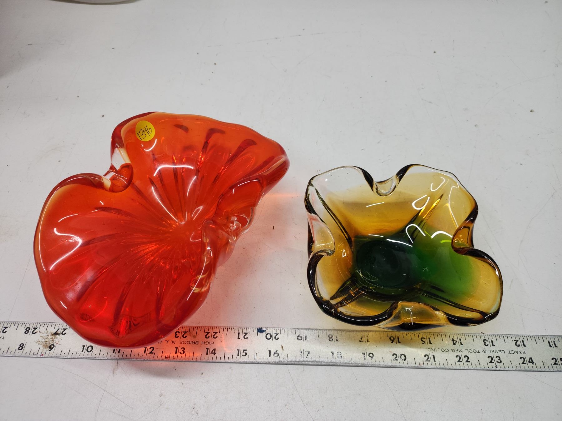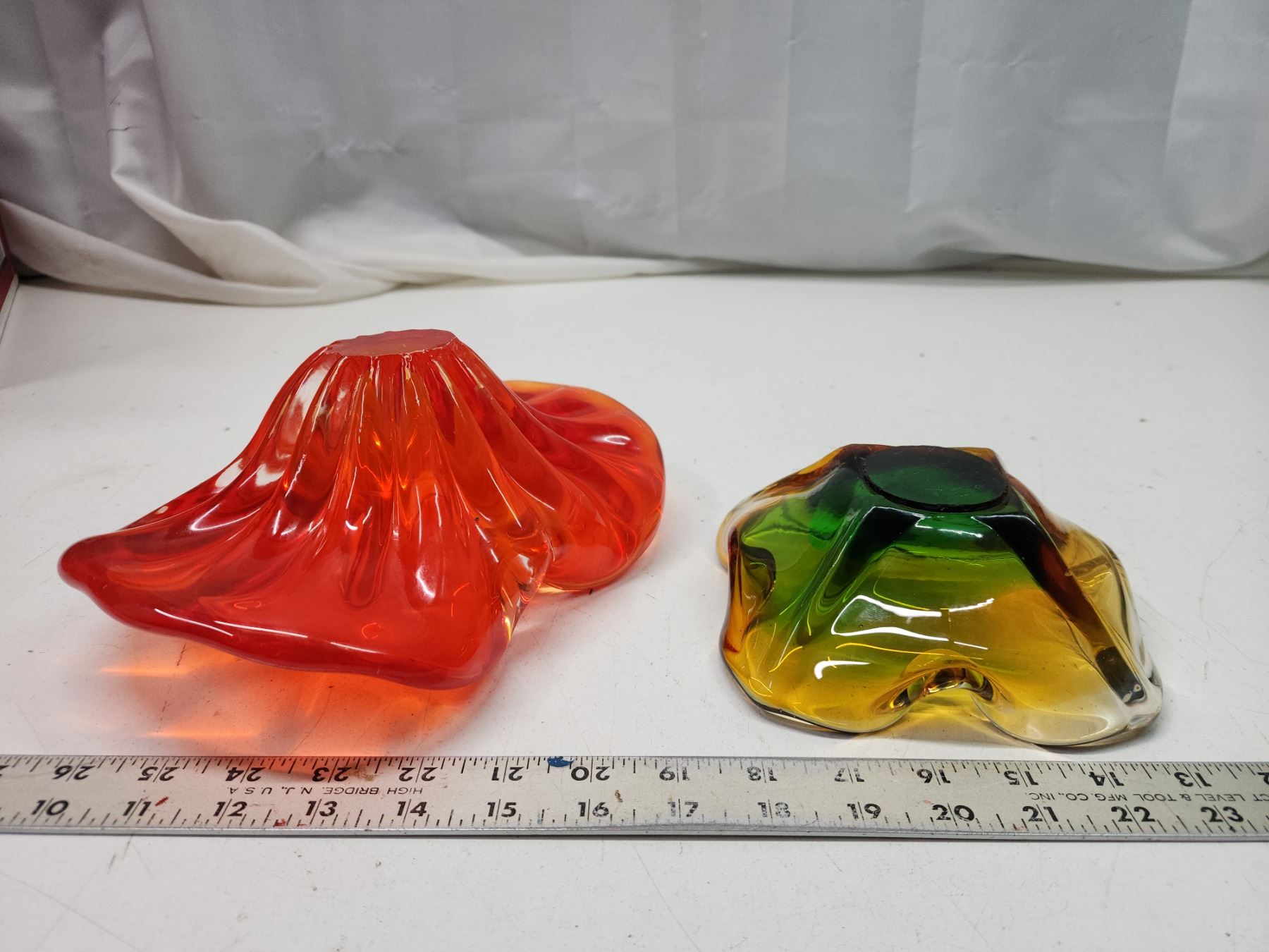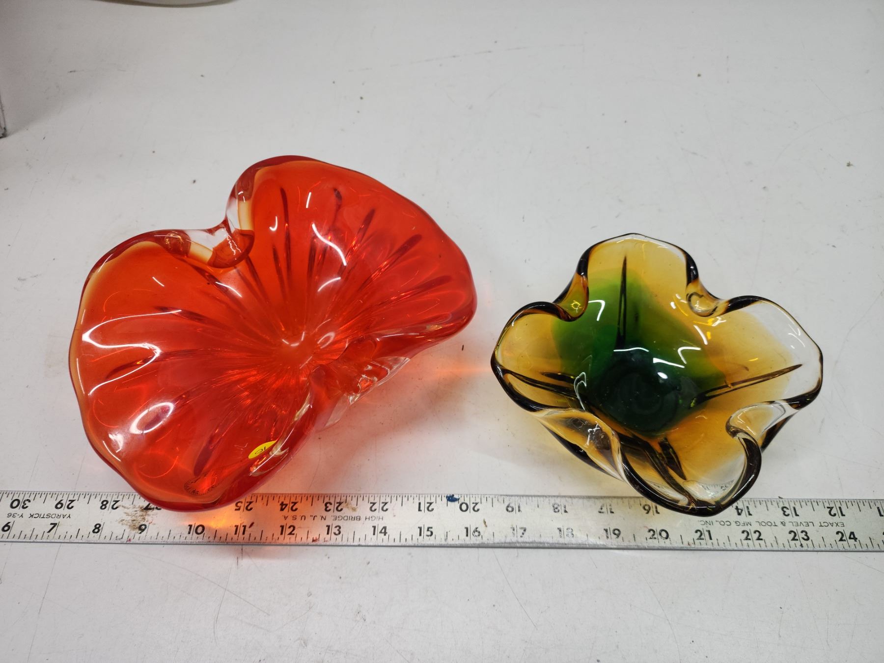2 Colored blown glass décor bowls