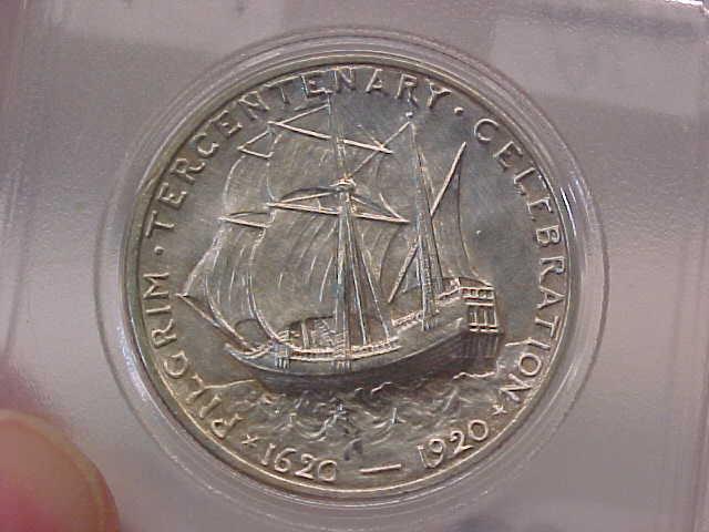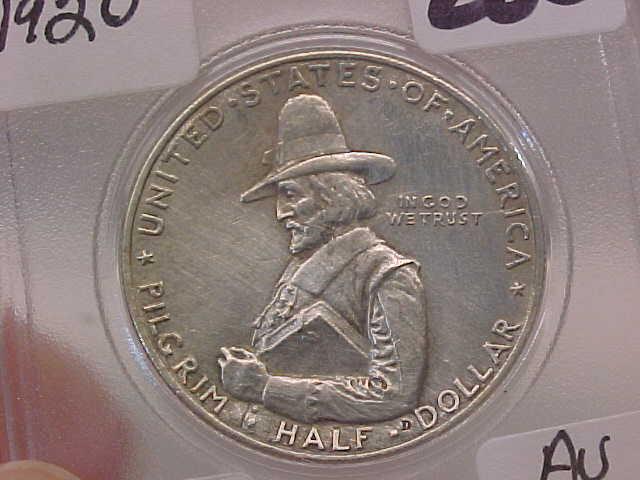 2 Commemorative Half $, both AU details cleaned: 1892 Columbian Expo, 1920 Pilgrim
