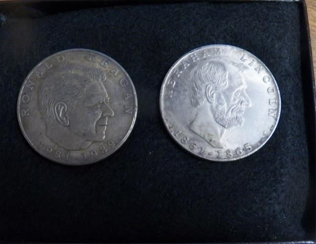 Ronald Regan 1981-1989 & Abraham Lincoln 1861-1865 Commerative Tokens. (not silver)
