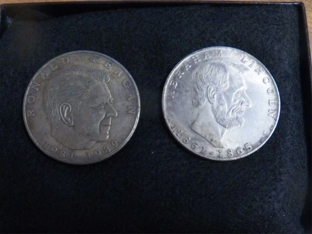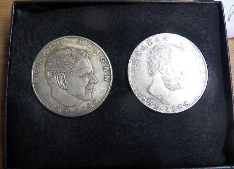 Ronald Regan 1981-1989 & Abraham Lincoln 1861-1865 Commerative Tokens. (not silver)