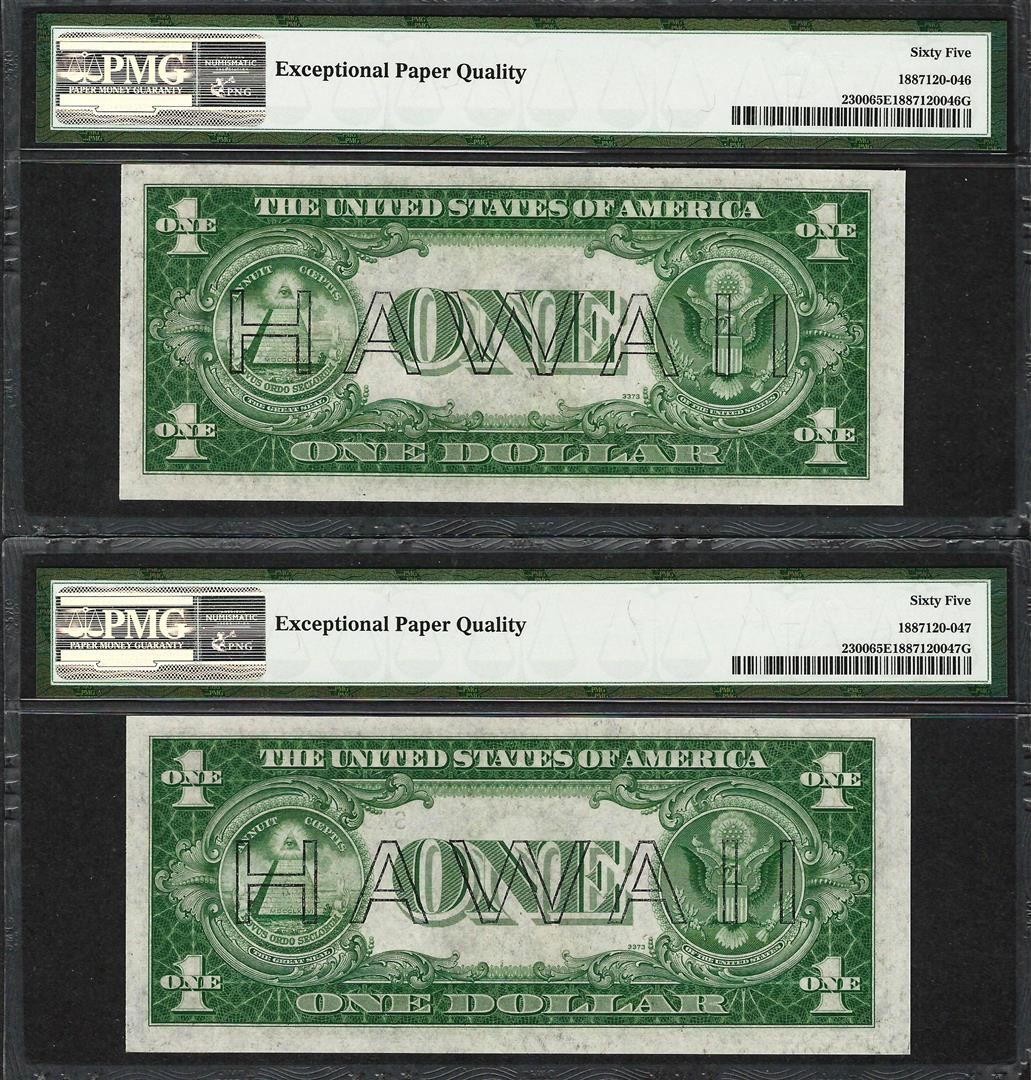 (2) Consec. 1935A $1 Hawaii Silver Certificate WWII Emergency Notes PMG Gem Unc. 65EPQ
