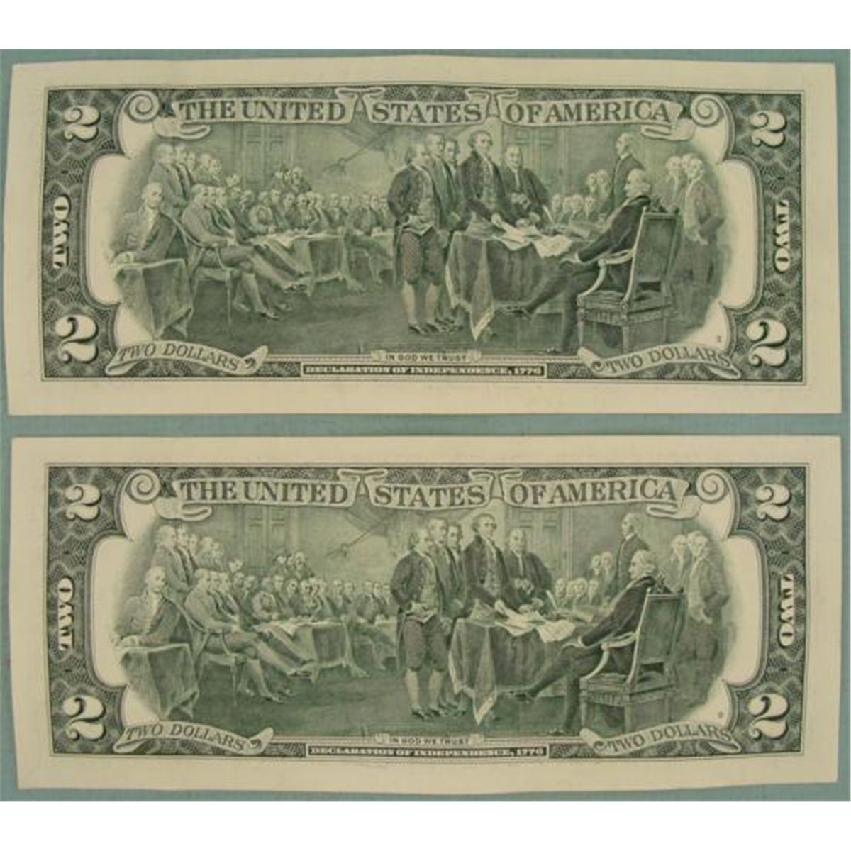 (2) 2003 $2 bills * Serial numbers: ConsecutiveMint mark: I (Minneapolis)Grade: Crisp Uncirculated*Note: Bills will have different serial numbers than those pictured *