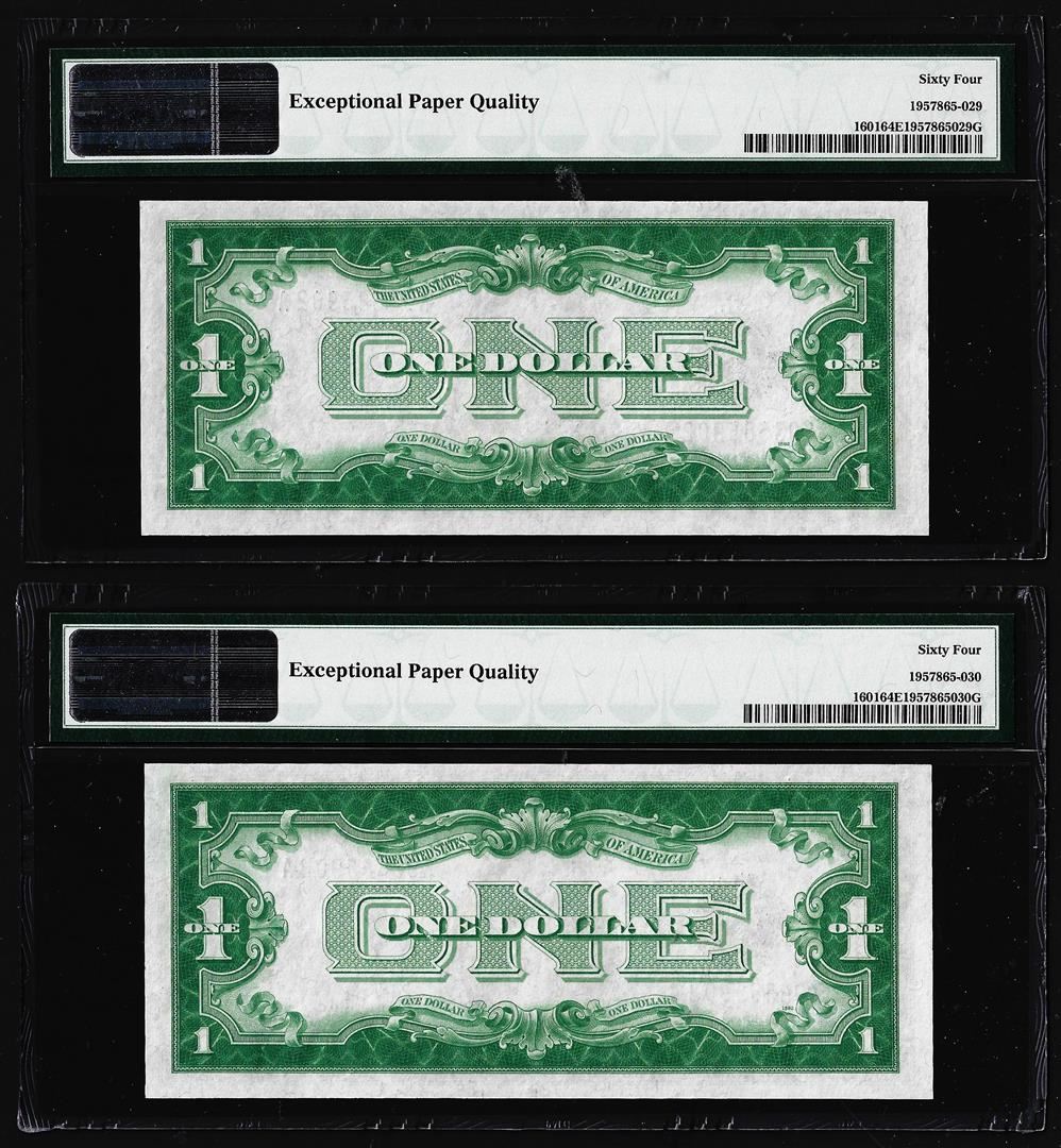 (2) Consecutive 1928A $1 Funnyback Silver Certificate Notes PMG Ch. Uncirculated 64EPQ