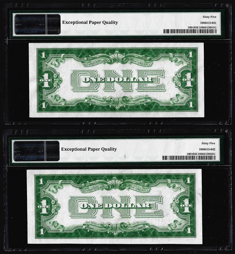 One (2) Consecutive 1928A $1 Silver Certificate Notes Fr.1601 PMG Gem Uncirculated 65EPQ. PMG Certified.