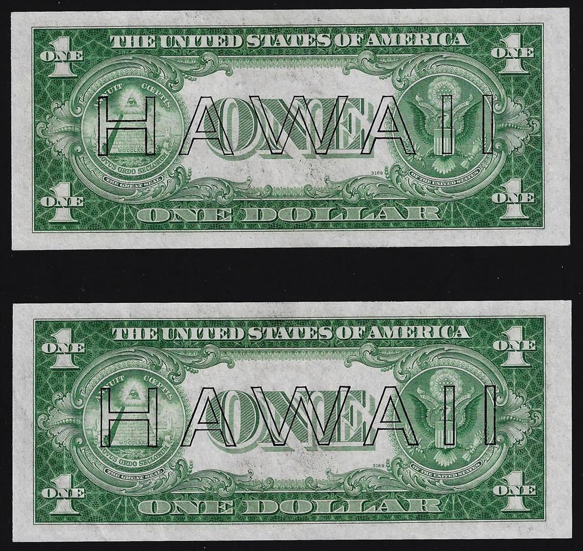 One (2) Consecutive 1935A $1 Silver Certificate WWII Emergency Hawaii Notes.