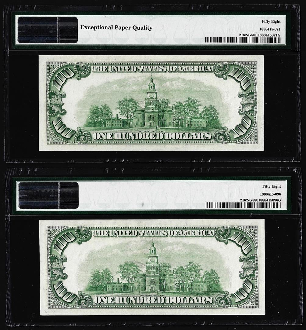One (2) Consecutive 1950E $100 Federal Reserve Notes Chicago PMG Choice About Unc 58EPQ. PMG Certified.