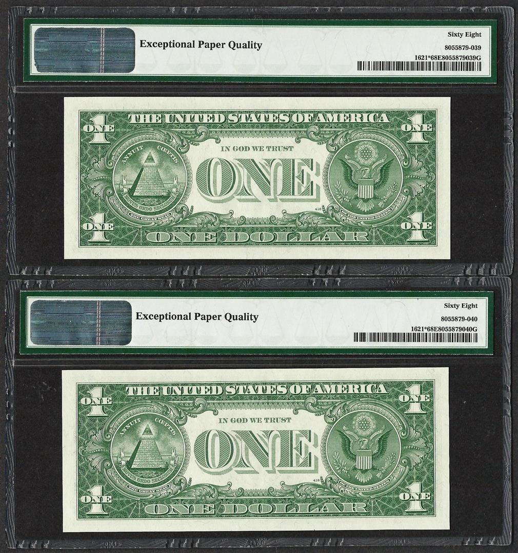One (2) Consecutive 1957B $1 Silver Certificate STAR Notes PMG Superb Gem Unc. 68PPQ. PMG Certified.