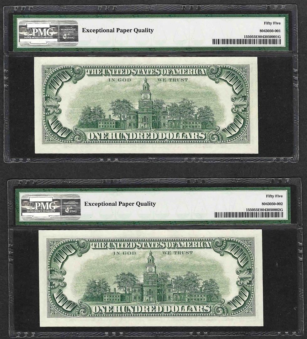 One (2) Consecutive 1966 $100 Legal Tender Notes PMG Choice About Uncirculated 55EPQ. PMG Certified.