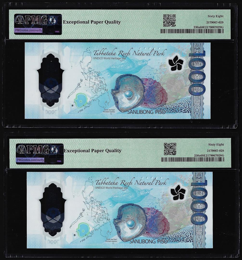 One (2) Consecutive 2022 Philippines 1000 Piso Notes PMG Superb Gem Uncirculated 68EPQ. PMG Certified.