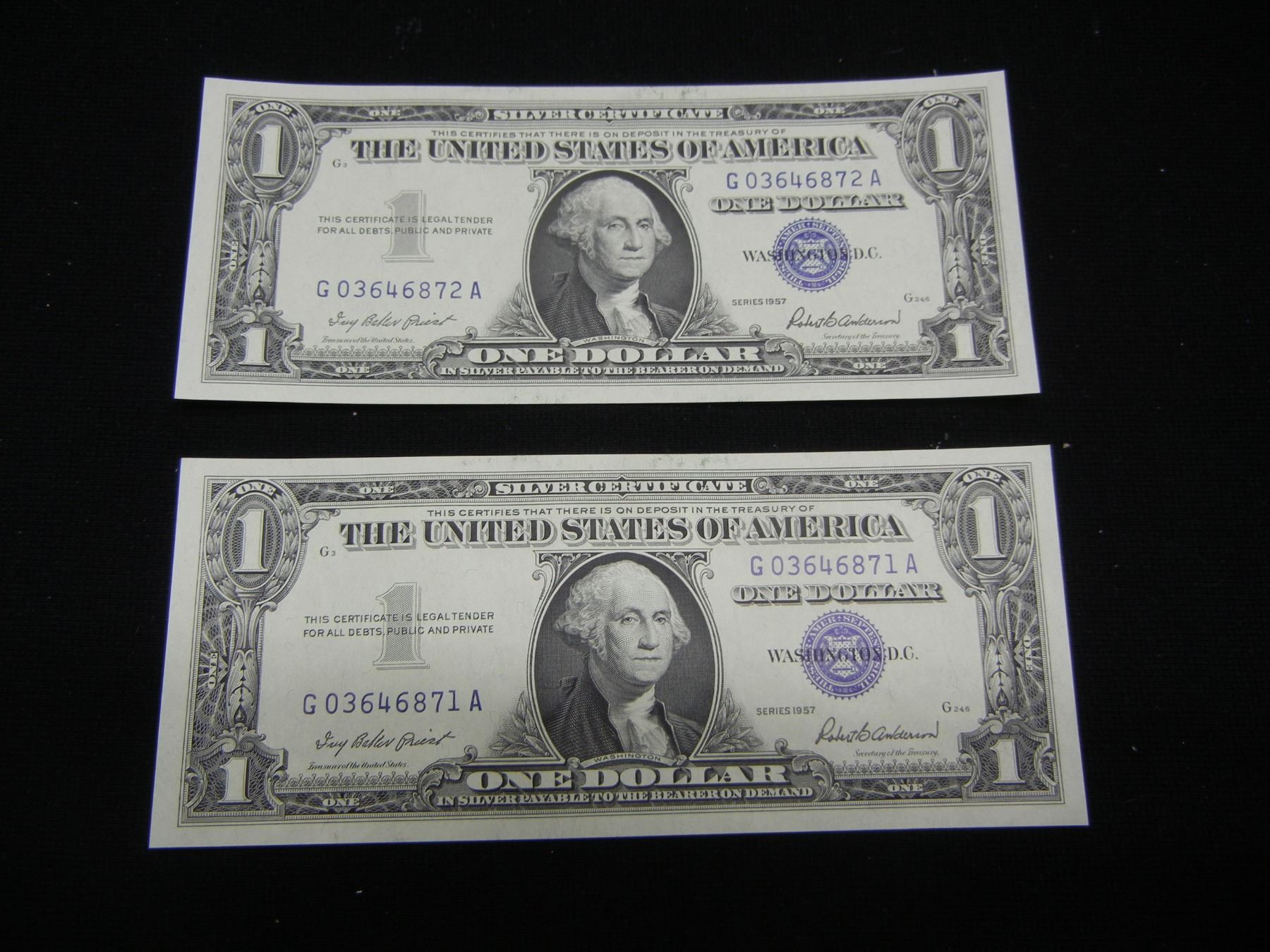 (2) Consecutive Serial Numbers $1.00 Silver Certificate Gem Crisp Notes