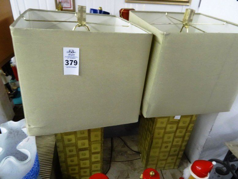 2 Contemporary Wood Geometric Table Lamps - 2 Times the Money