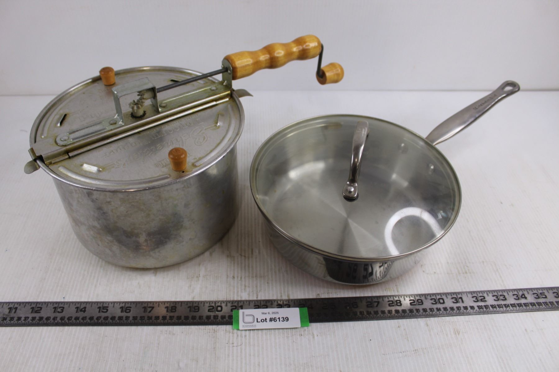 (2) Cooking Pans (KitchenAid 10" Dia with Lid & Schneider's Popcorn Popper 9.5" Dia)