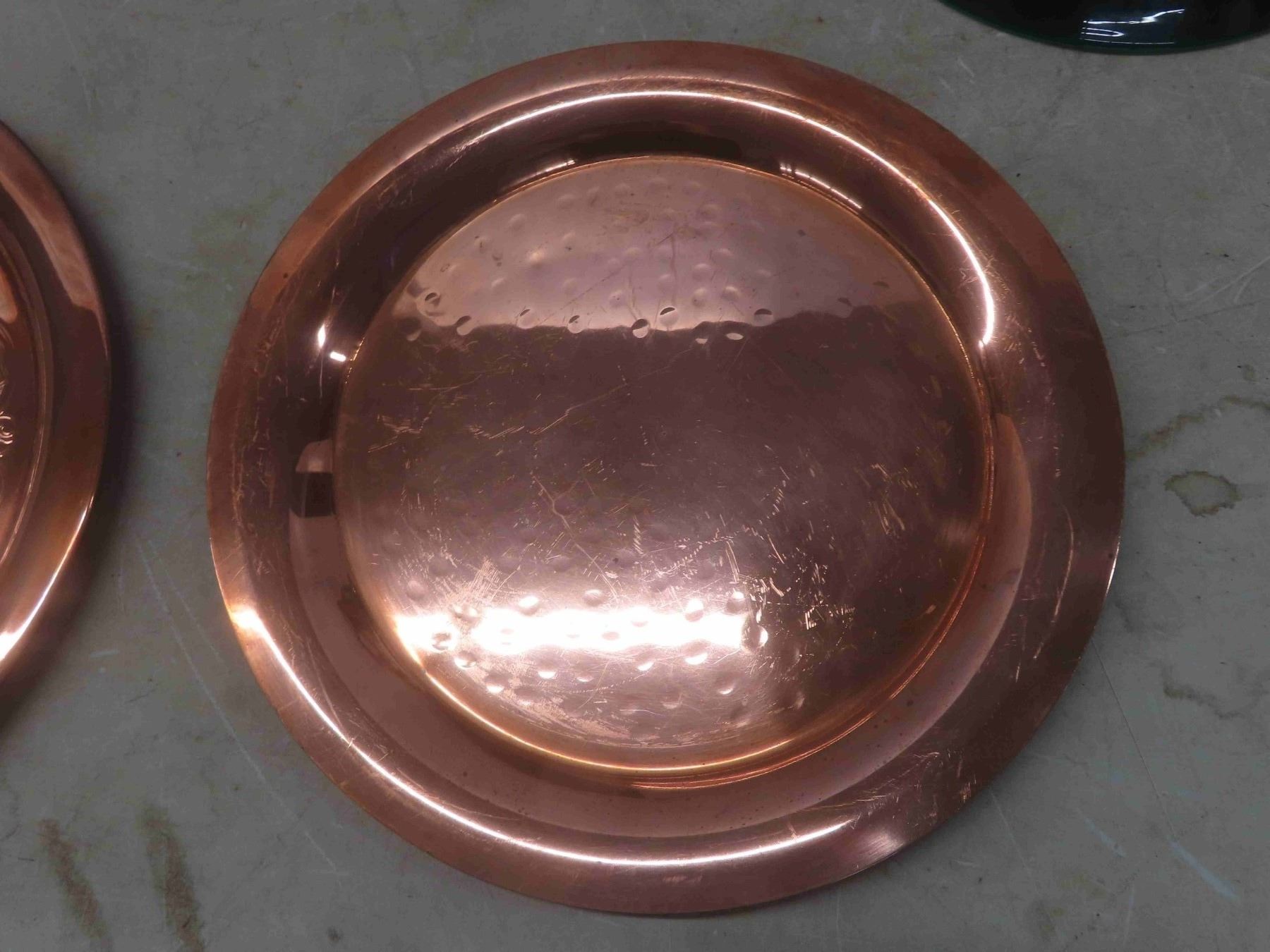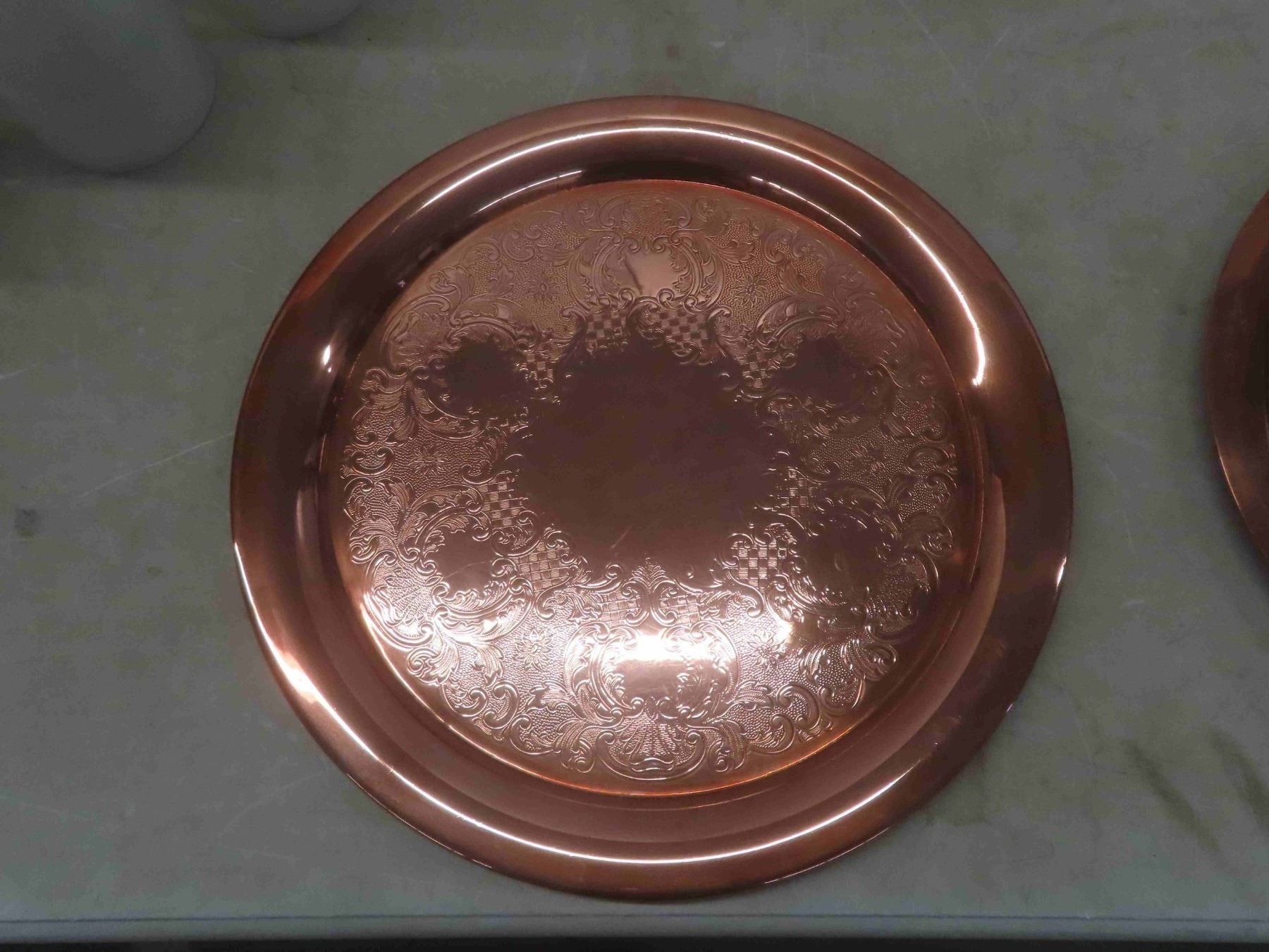 2 Copper Plates 13 3/4'' & 12 1/4'' , 2 Brass Light Fixtures