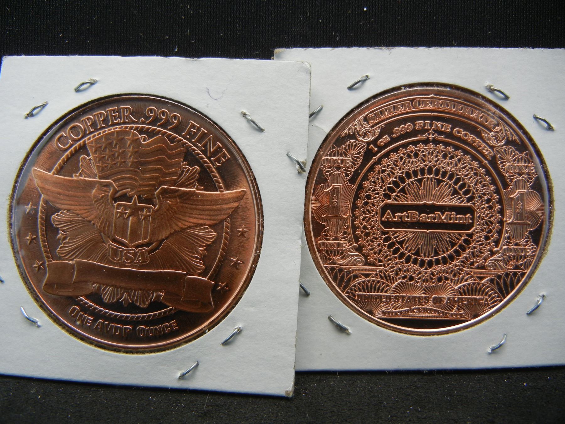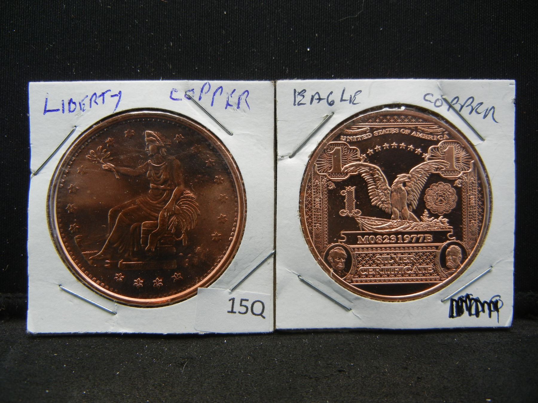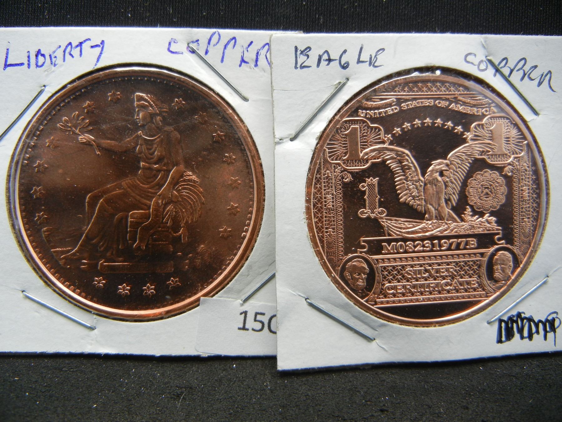 (2) Copper Rounds .999 Seated Liberty and Eagle Designs