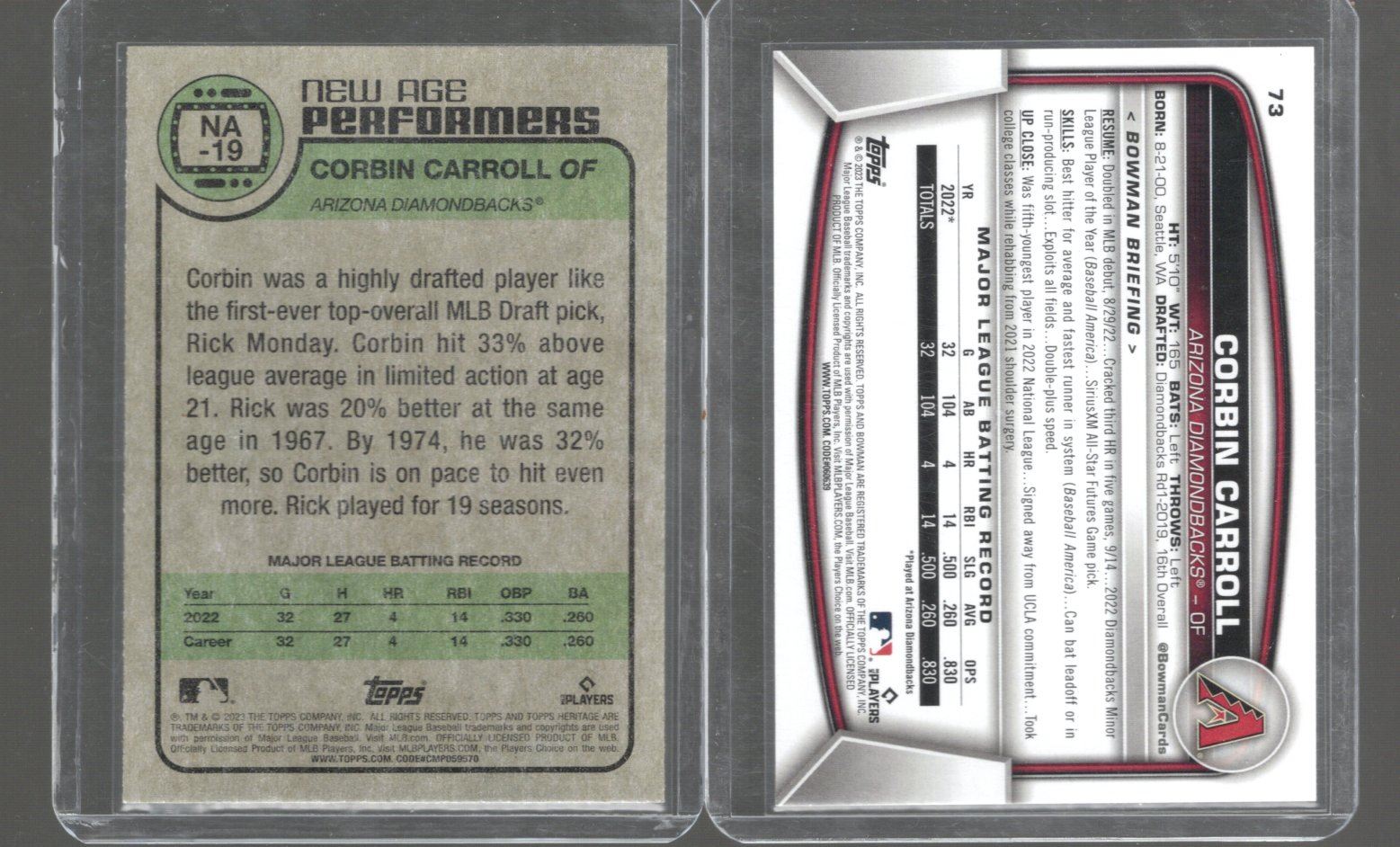 2 Corbin Carroll RCs Bowman Paper & Heritage New Age Performers
