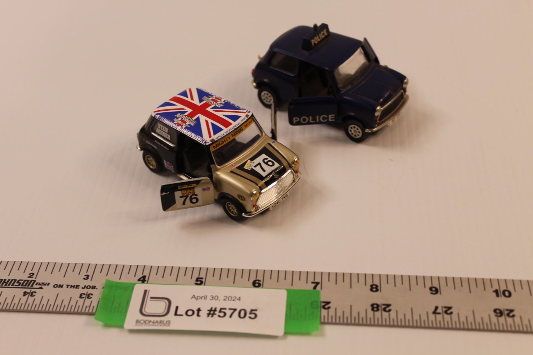 (2) Corgi Toys 1:36 Scale Die Cast Mini Coopers - "Police" & "Stew Jenner" Racing Mini