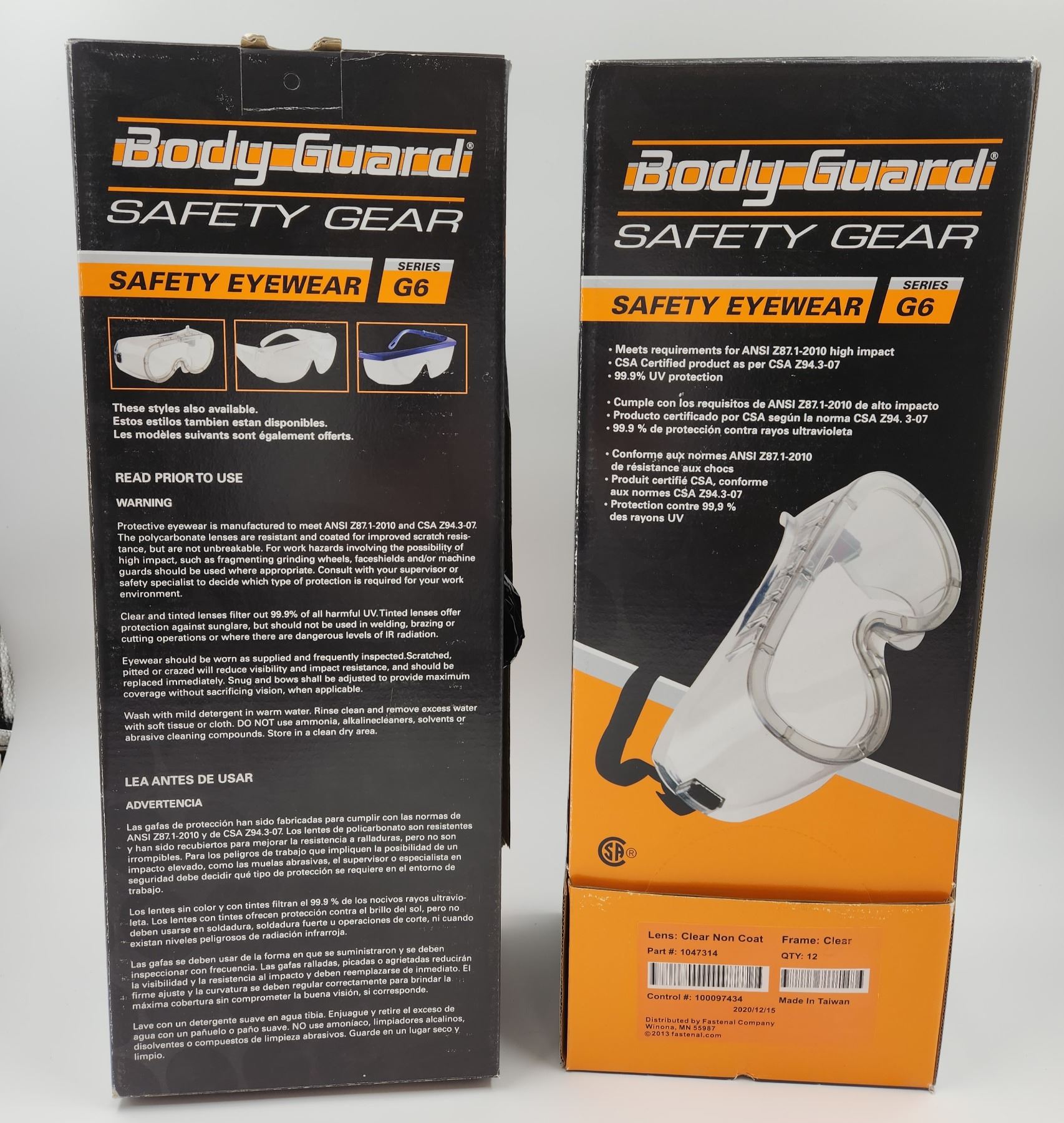 2 Counter Boxes of Body Guard Safety Eyewear (G6 Series & 12 per Box)