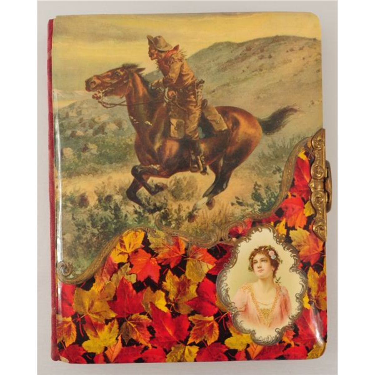 2 Celluloid Cover Photo Albums, Pony Express Riders. Measures 8 1/2" x 10 1/2". Circa 1890-1910
