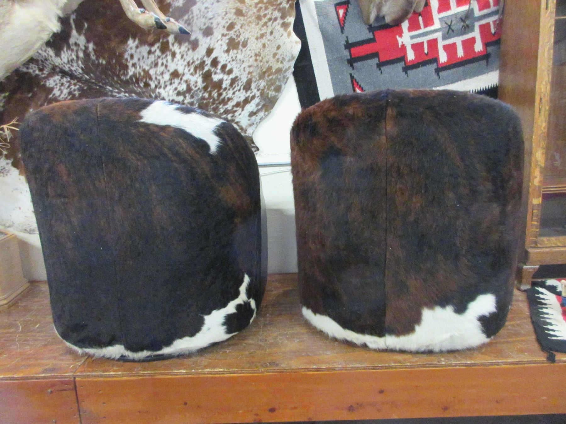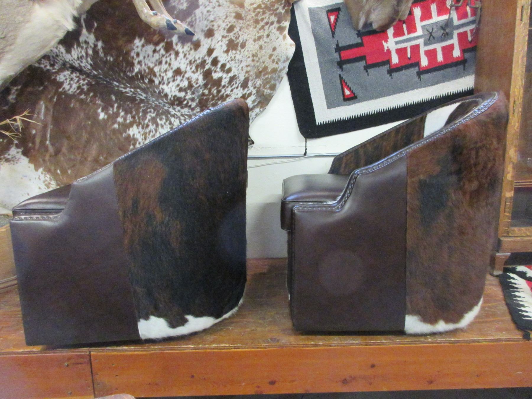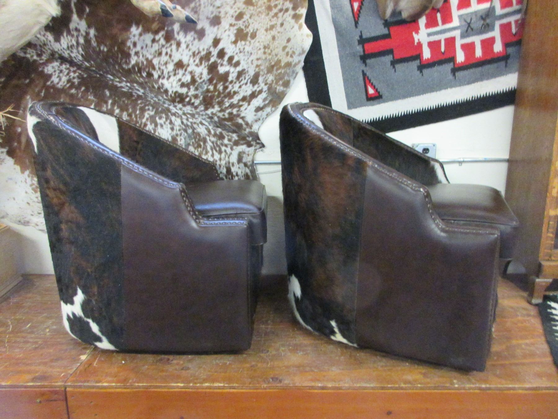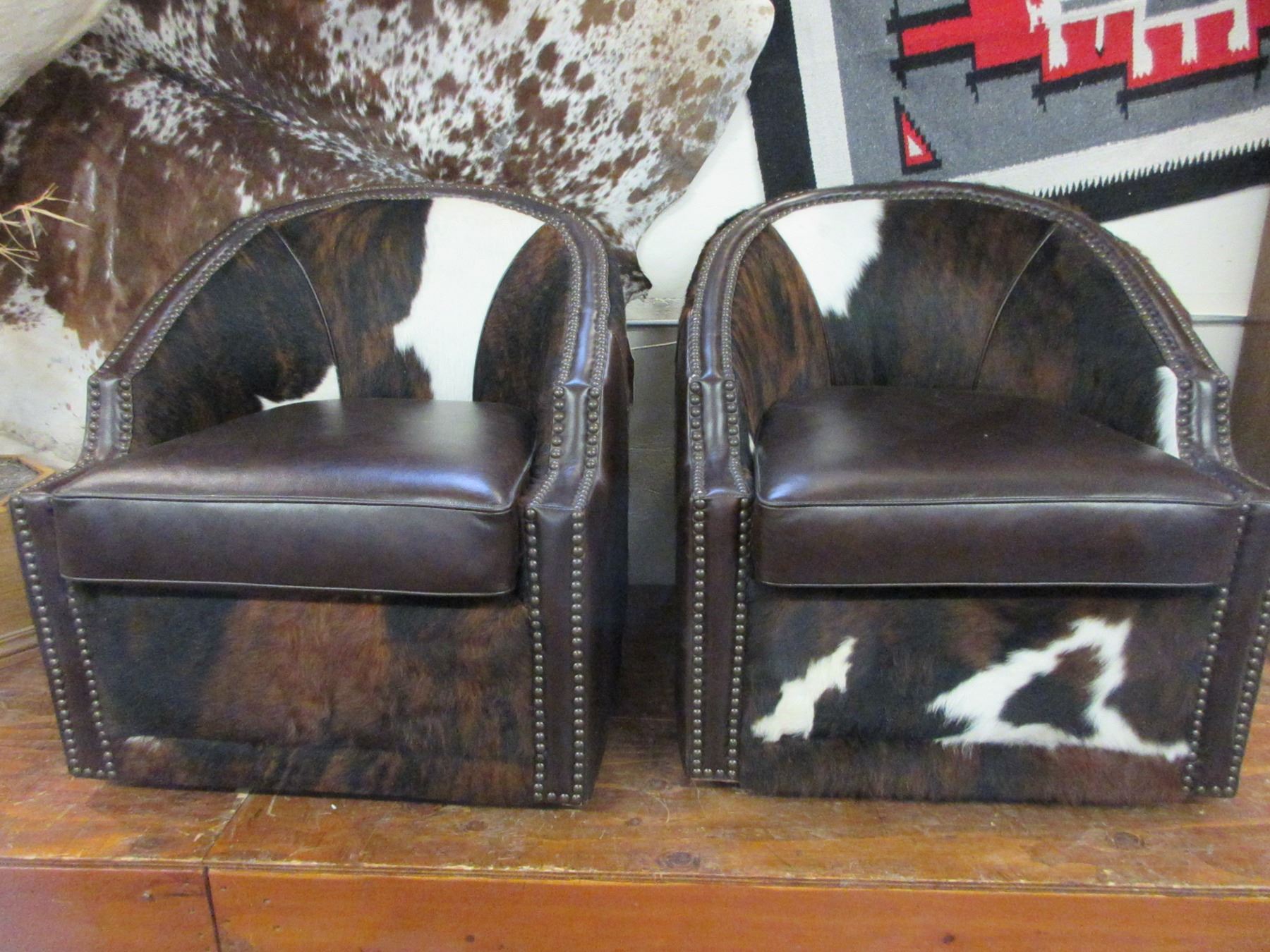 2 Cowhide Chairs That Swivel- Studded- Excellent Condition