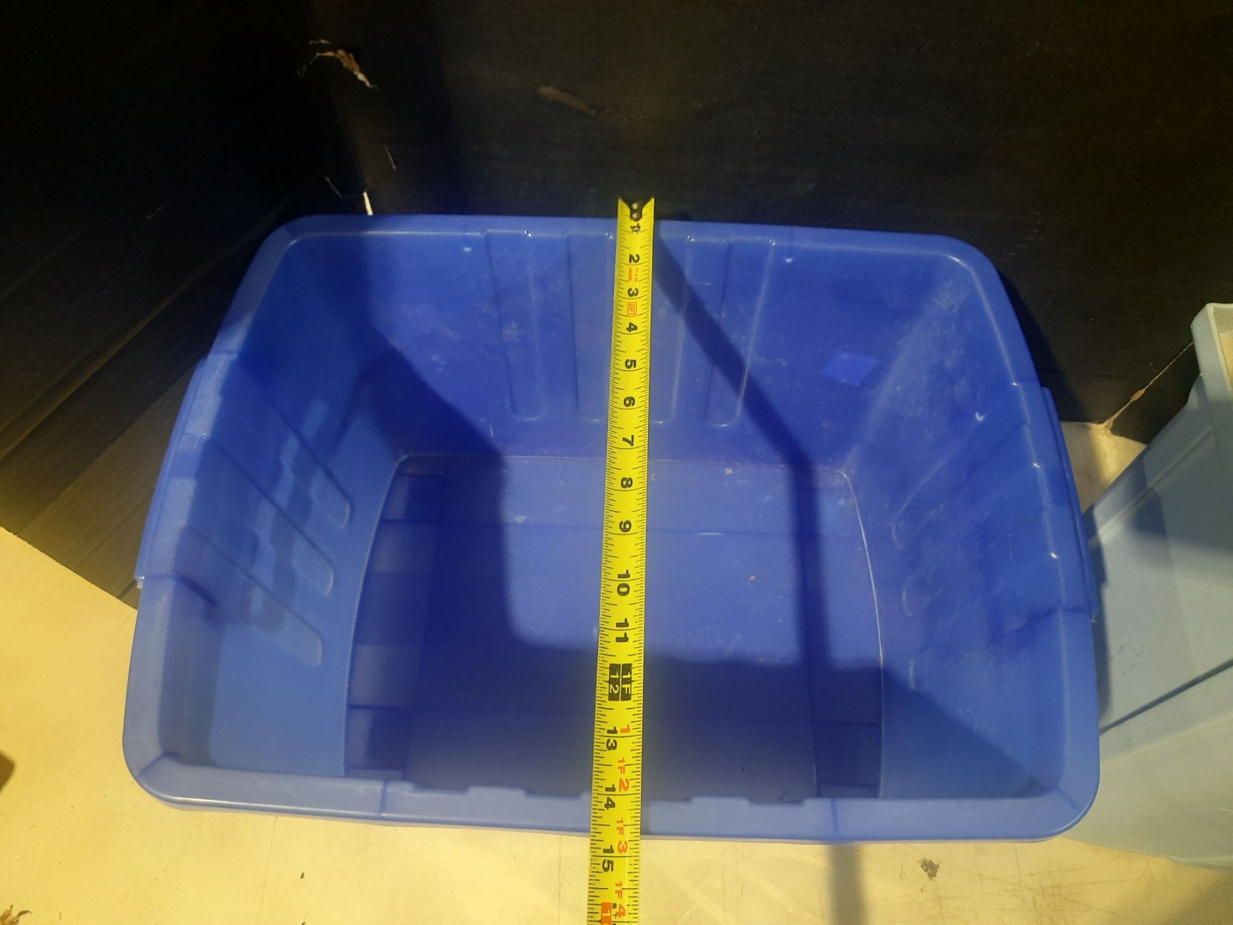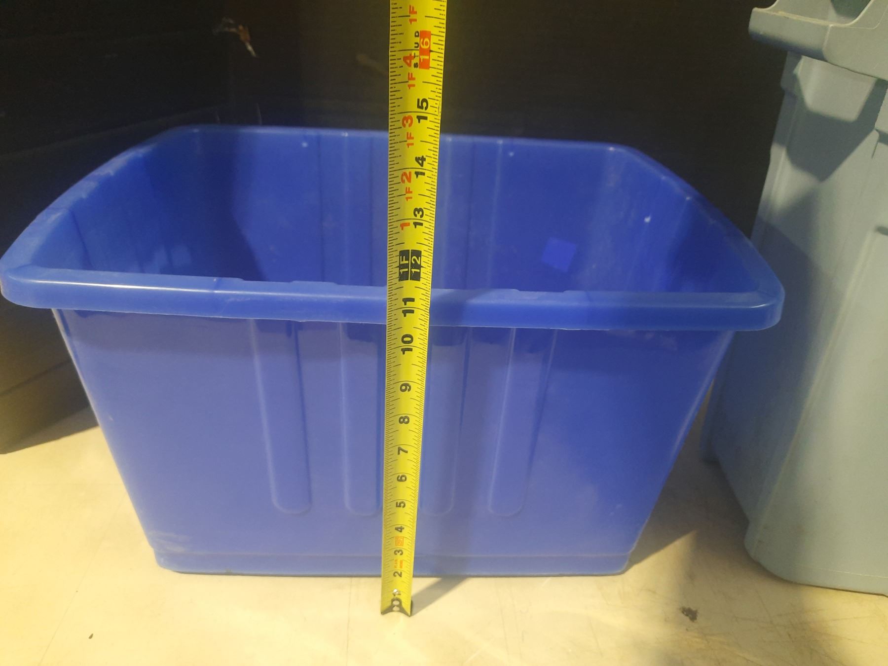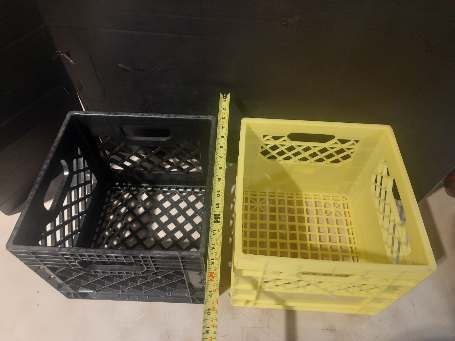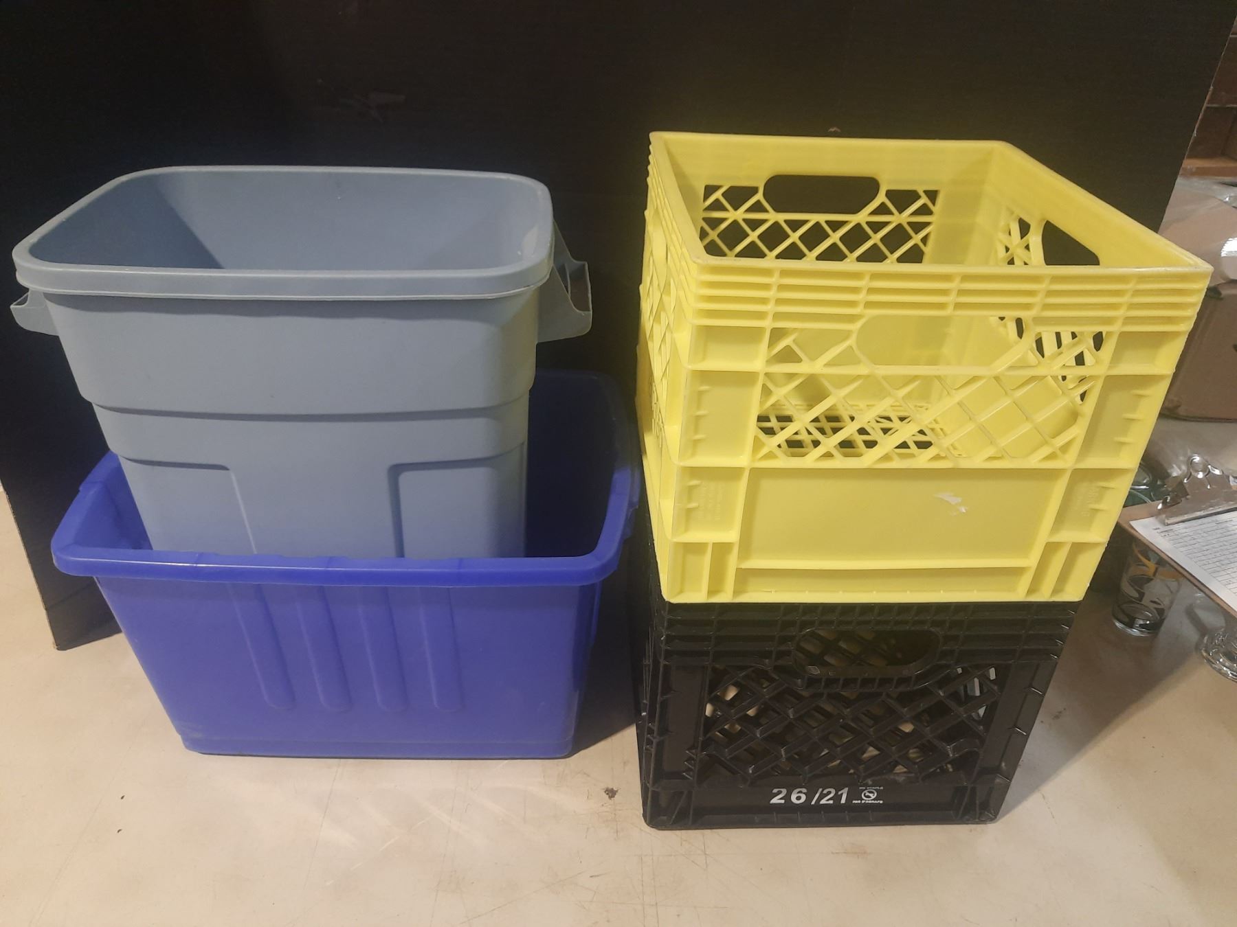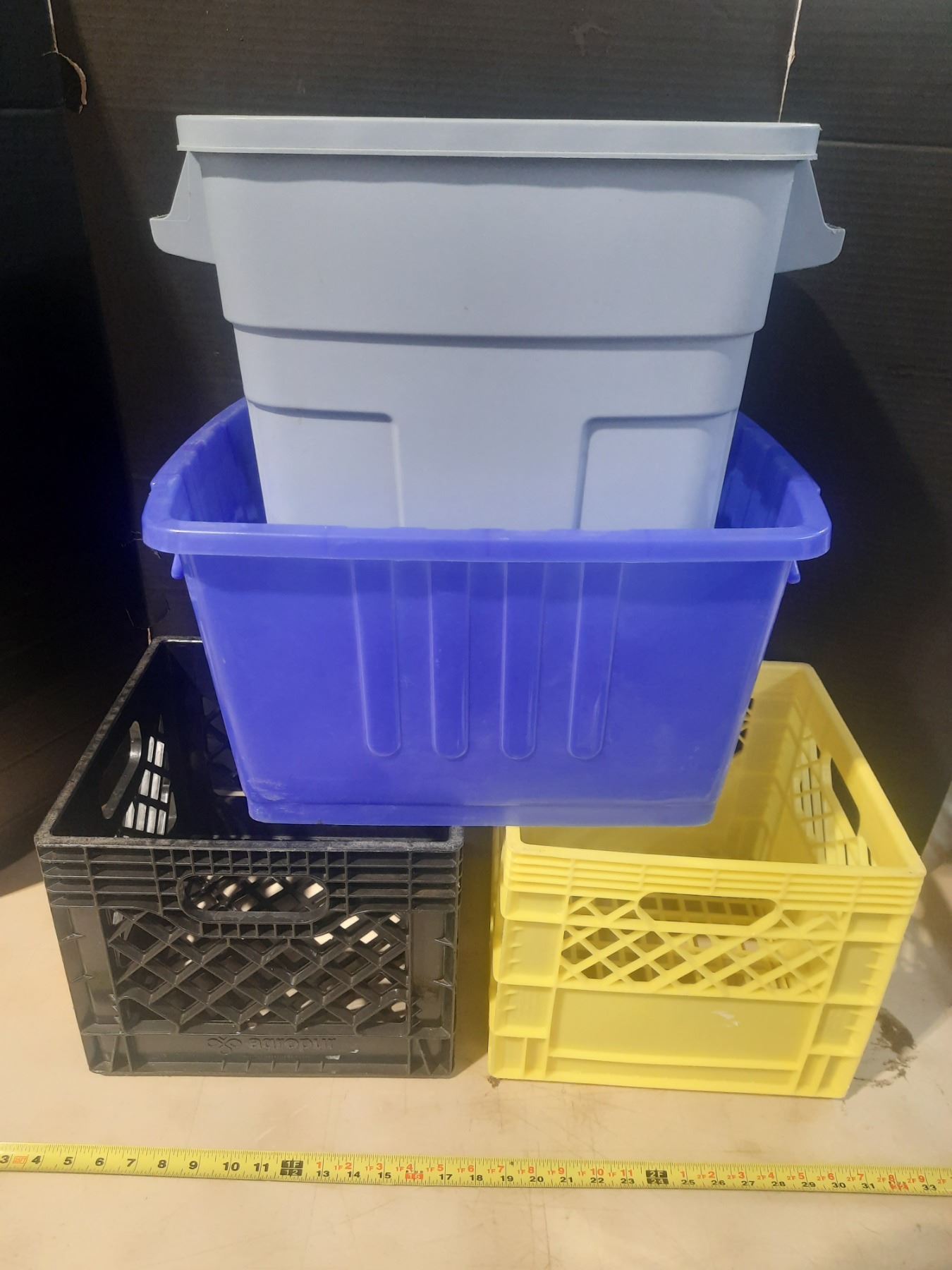 (2) Crate (New) and (1) Storage Container and (1) Garbage Bin.