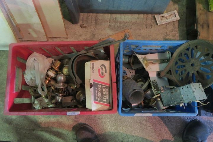 2 Crate of Misc. Items Including Door Knobs and Light Covers
